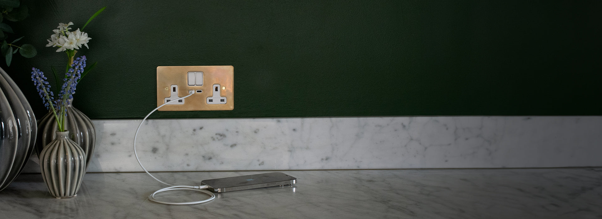 Antique brass is a ‘living’ finish which arrives hand-aged and then keeps getting darker over time for switches and sockets that look like they’ve always been there.