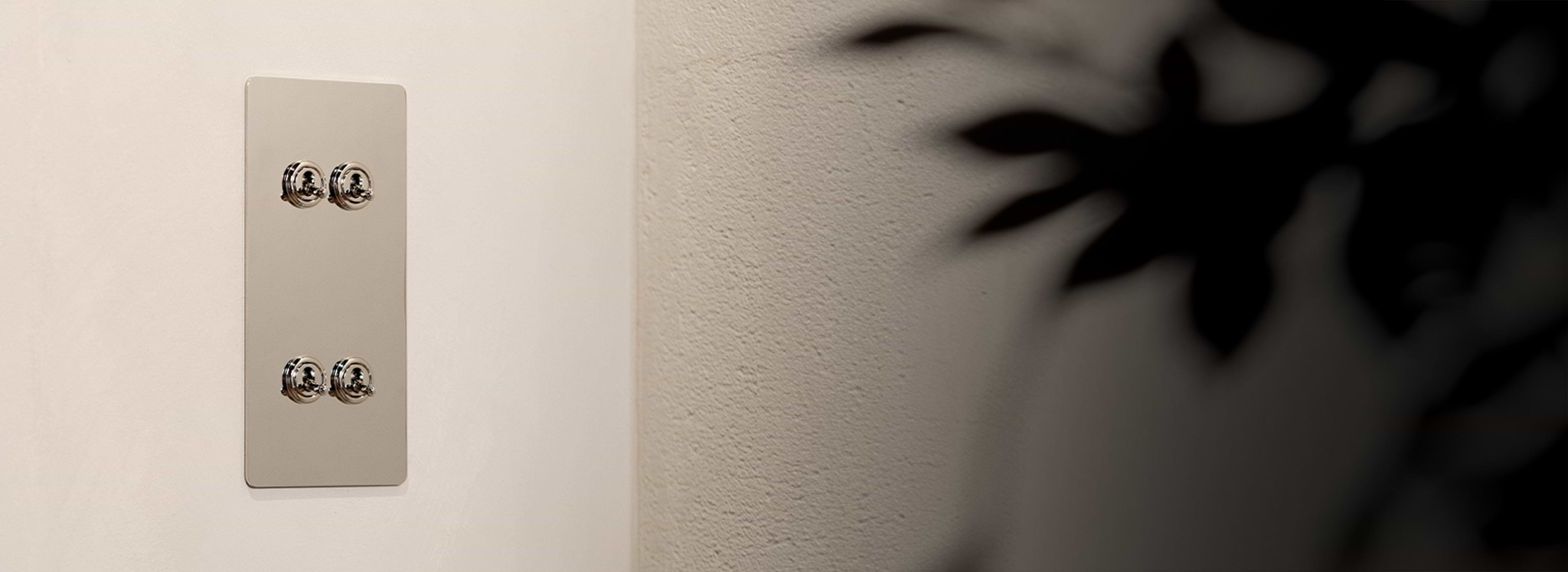Explore our polished nickel switch and socket collection, including toggles, rockers, dimmers, single and double sockets and USB ports.