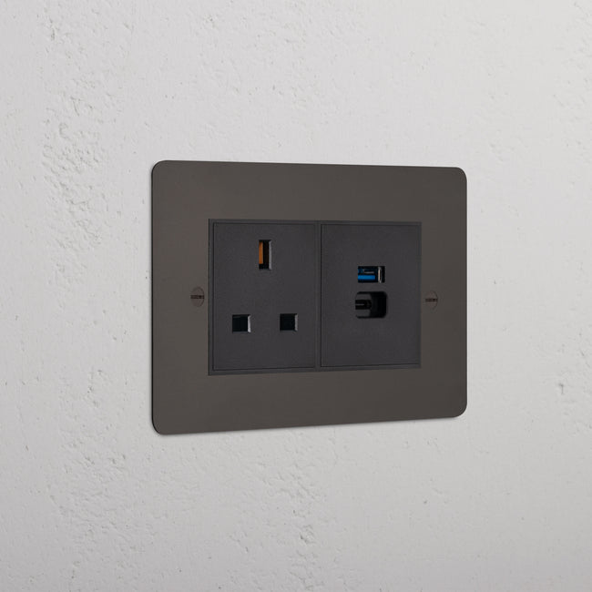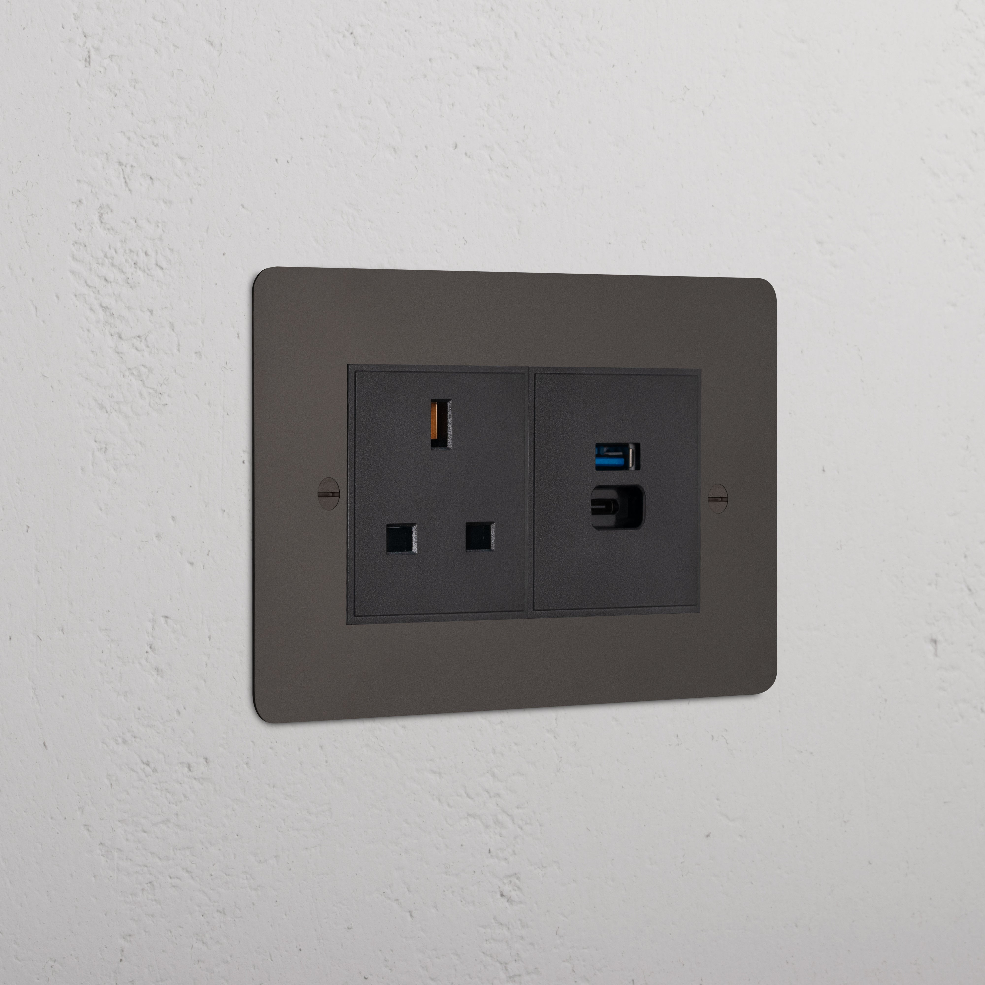 This double mixed socket combines an unswitched 13A socket and a dual USB-A+C fast charge socket on one plate.