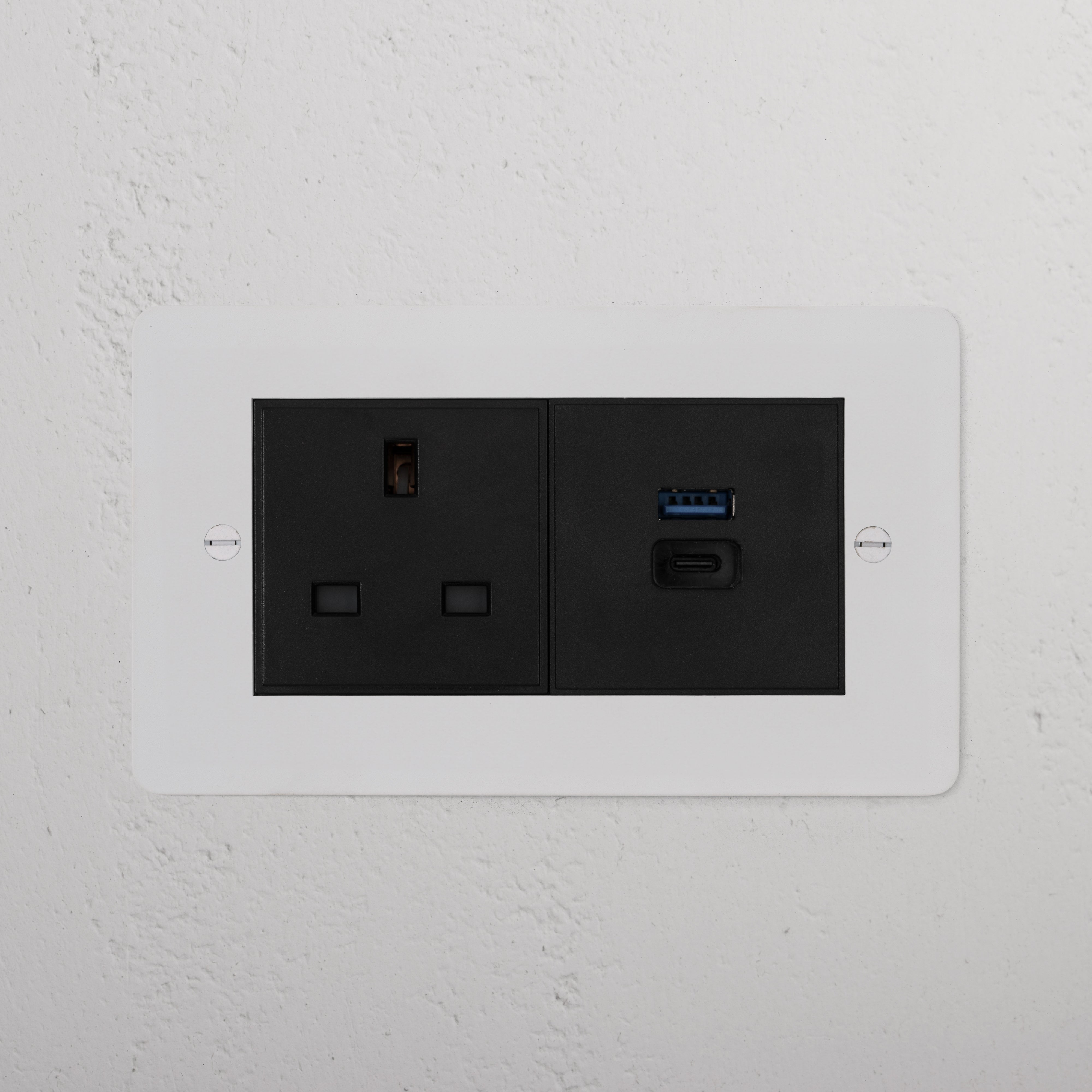 This double mixed socket combines an unswitched 13A socket and a dual USB-A+C fast charge socket on one plate.