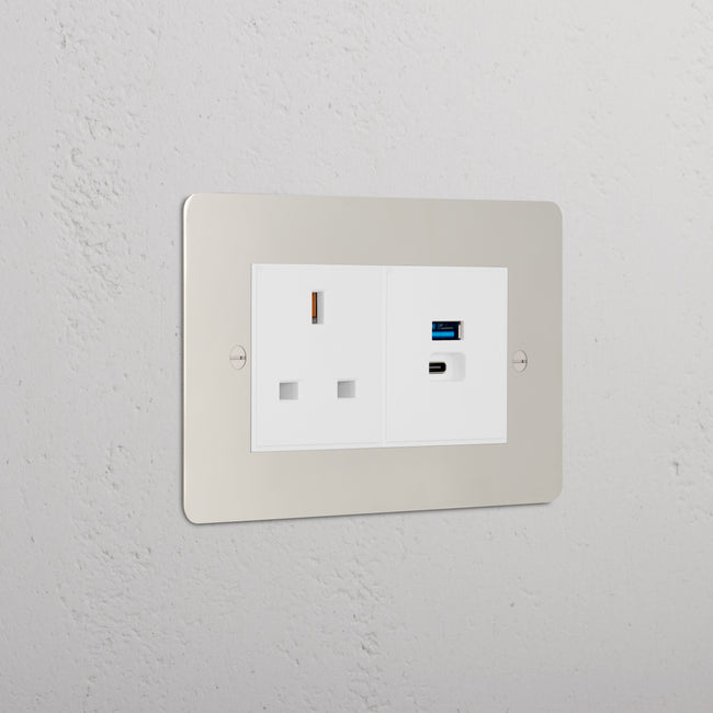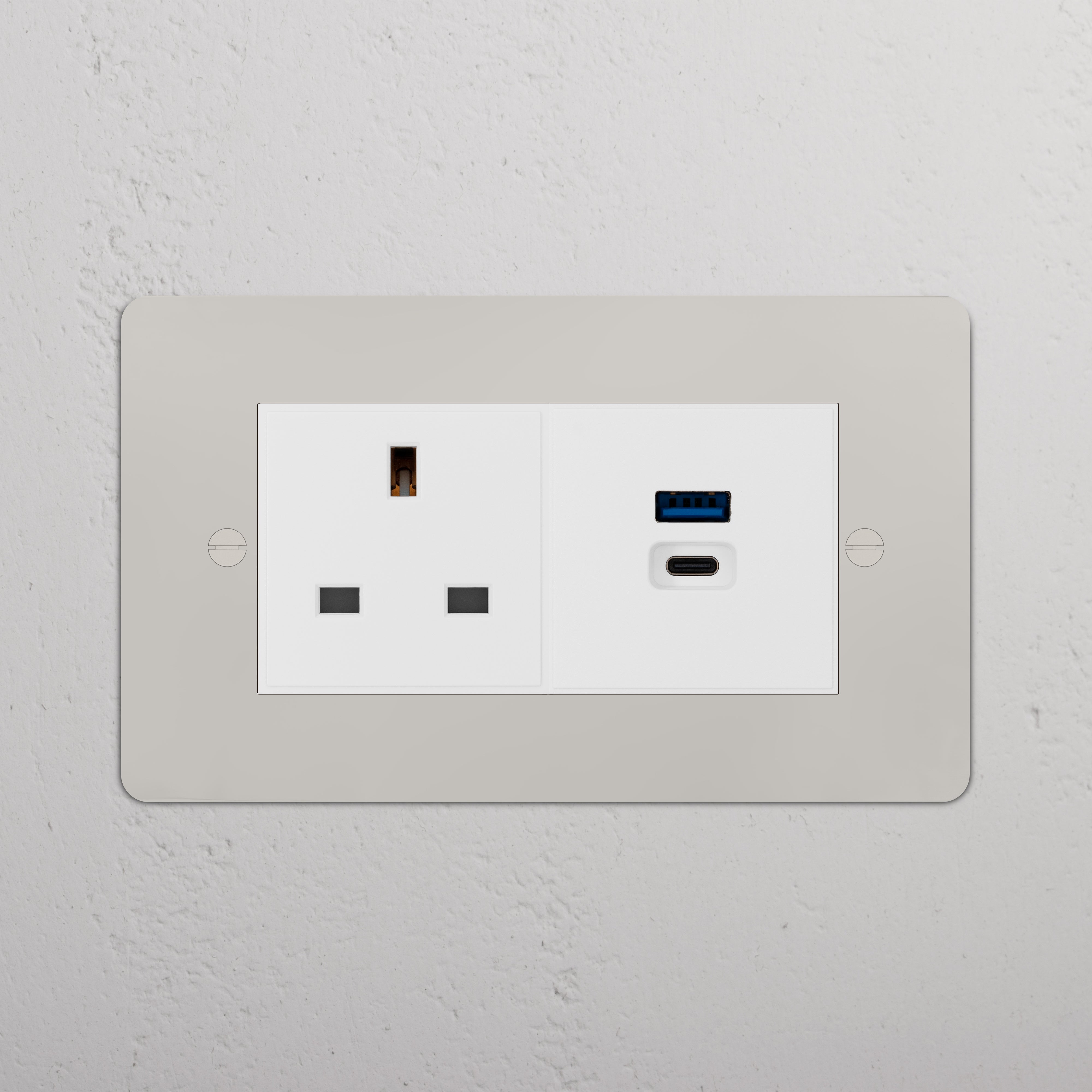 This double mixed socket combines an unswitched 13A socket and a dual USB-A+C fast charge socket on one plate.