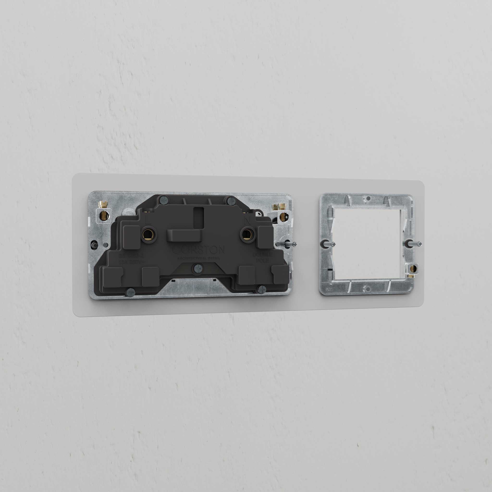 All Corston switches and sockets require a back box with a minimum depth of 35-47mm. It's the only way you'll achieve a flush finish. Our 6G and 8G switches must be used with a Corston double metal back box. because of the bespoke size.