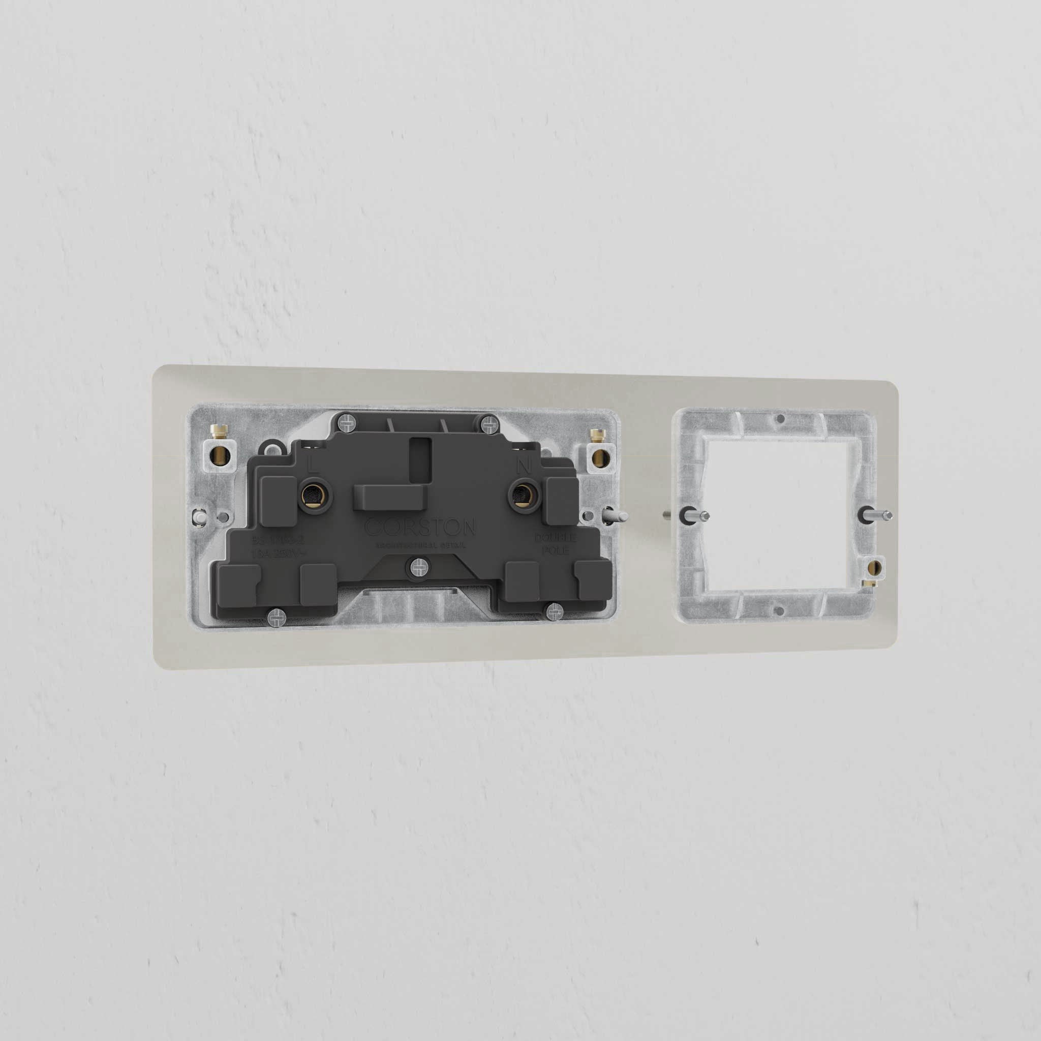 All Corston switches and sockets require a back box with a minimum depth of 35-47mm. It's the only way you'll achieve a flush finish. Our 6G and 8G switches must be used with a Corston double metal back box. because of the bespoke size.