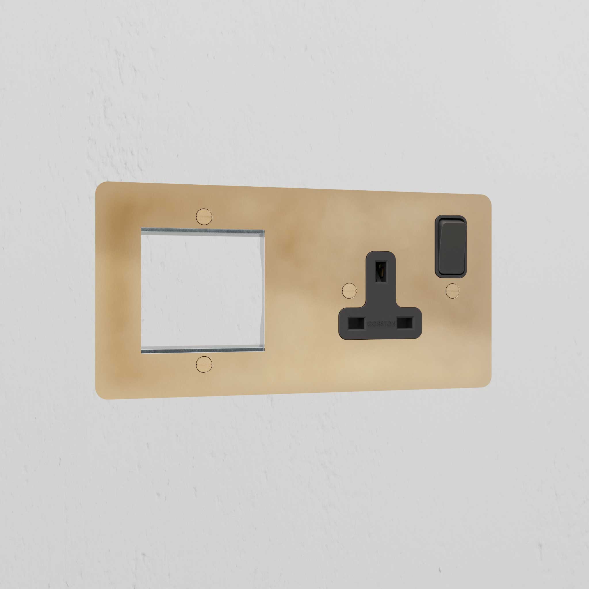 This 50mm module plate in bronze works with any one of our 50mm or two 25mm modules (just make sure you choose the ones made with black plastic). It comes with a built-in UK socket too.