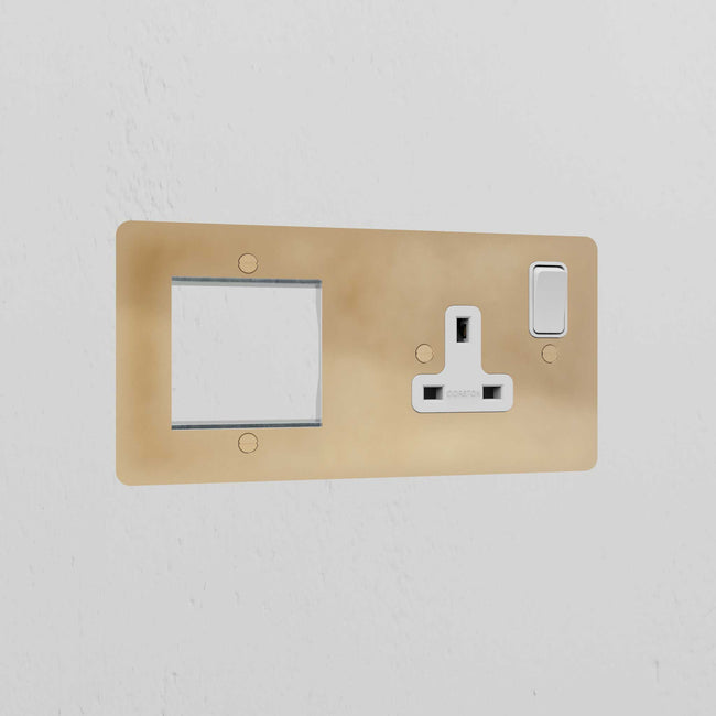 This 50mm module plate in bronze works with any one of our 50mm or two 25mm modules (just make sure you choose the ones made with black plastic). It comes with a built-in UK socket too.
