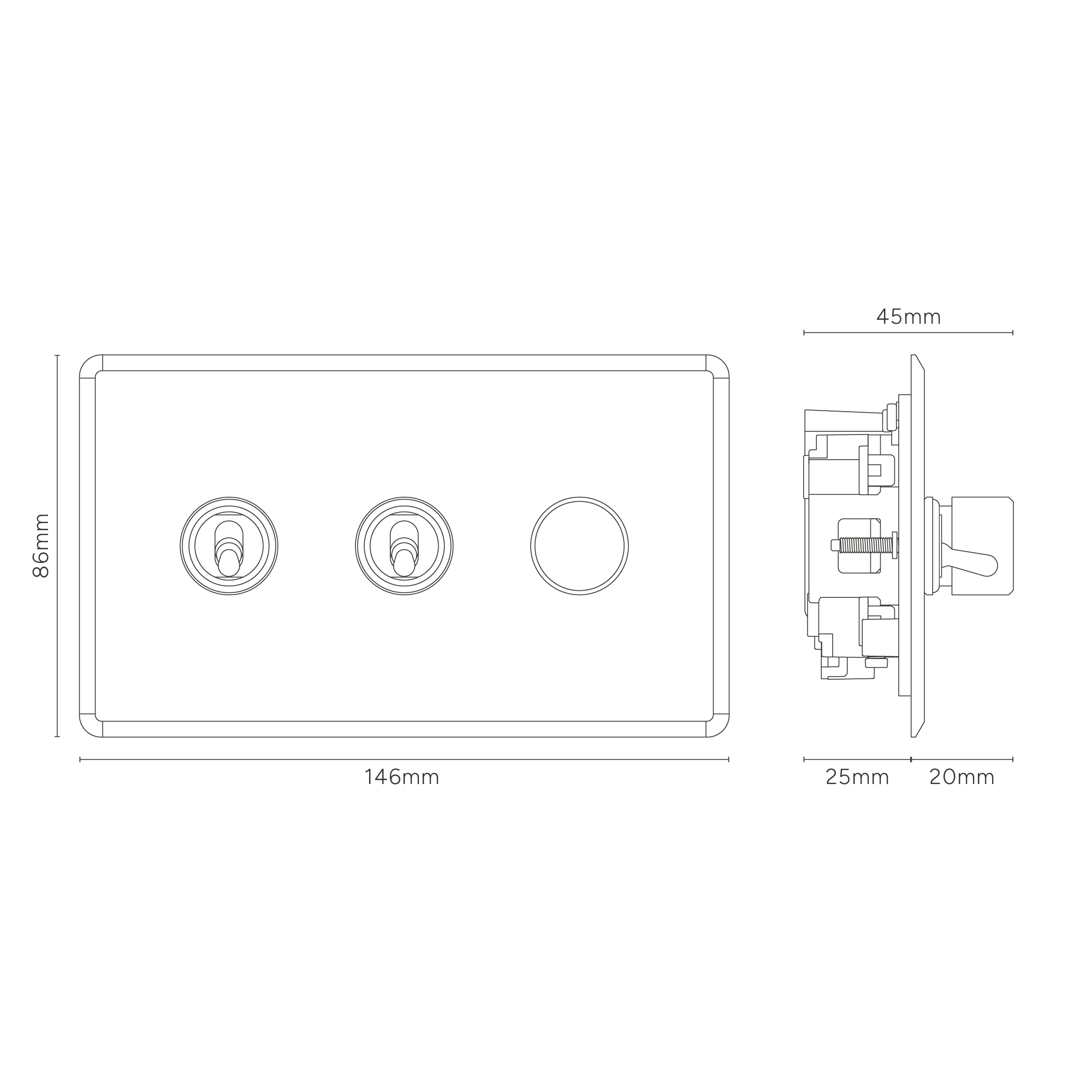 Our 1 gang architrave double pole toggle switch is a modern take on the classic dolly design. We’ve crafted it to be as sleek and timeless as possible in any interior setting.