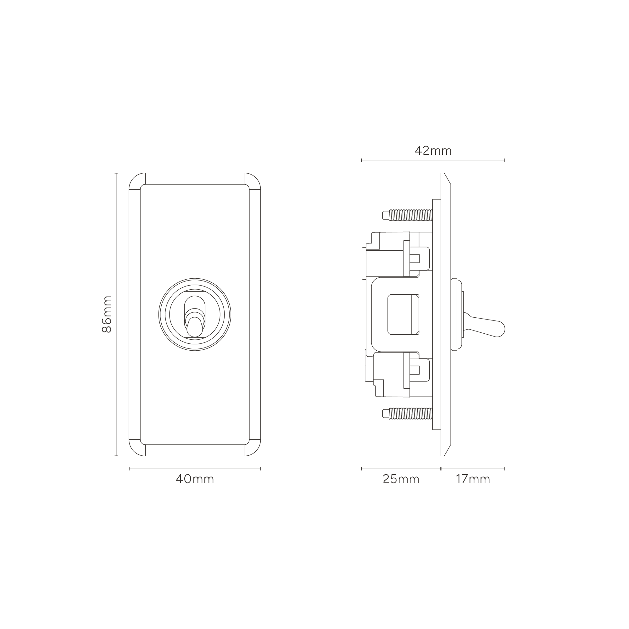 Our 1 gang architrave intermediate toggle switch is a modern take on the classic dolly design. We’ve crafted it to be as sleek and timeless as possible in any interior setting.