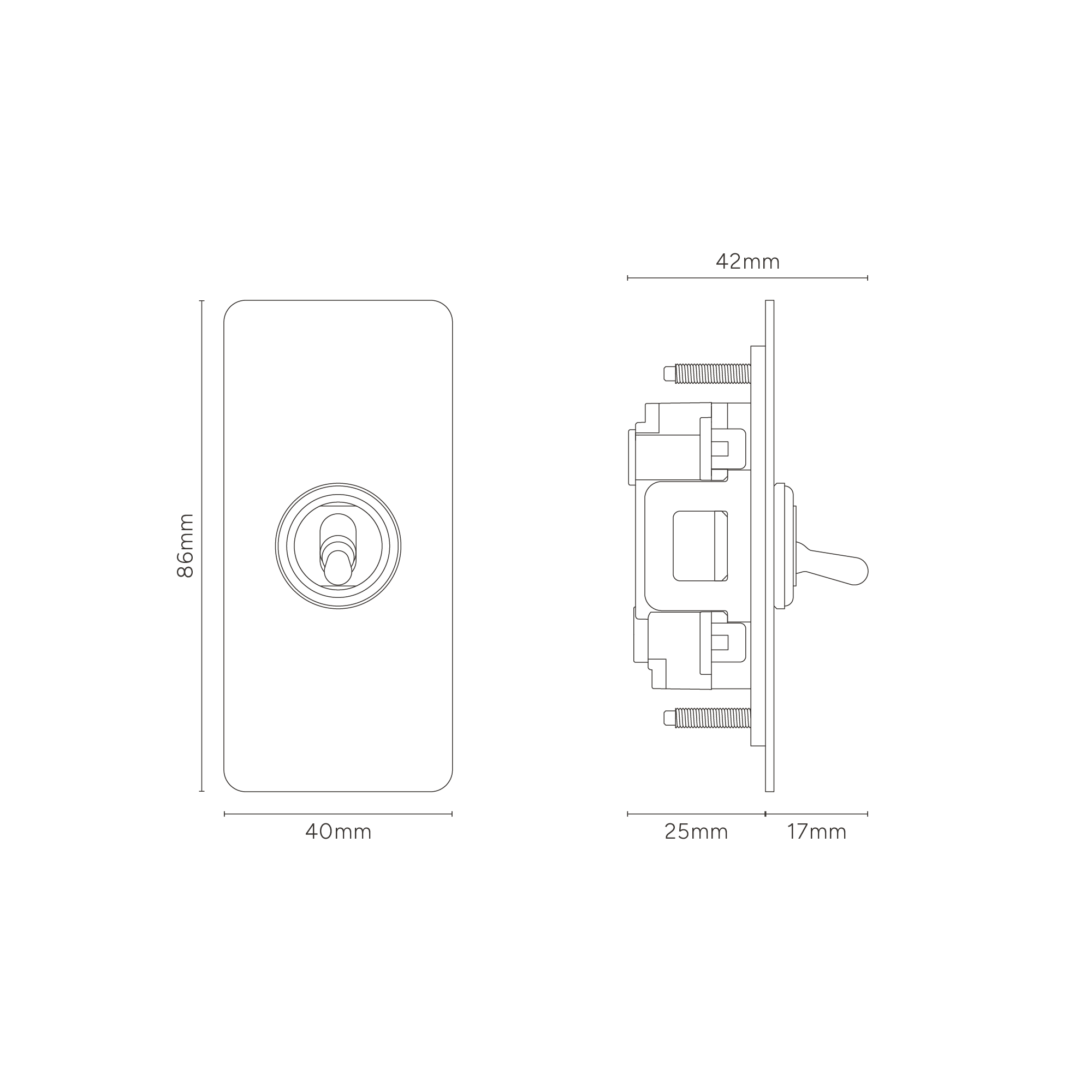 Our 1 gang architrave retractive toggle switch is a modern take on the classic dolly design. We’ve crafted it to be as sleek and timeless as possible in any interior setting.