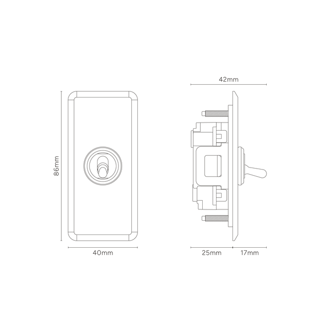 Our 1 gang architrave two-way toggle switch is a modern take on the classic dolly design. We’ve crafted it to be as sleek and timeless as possible in any interior setting.