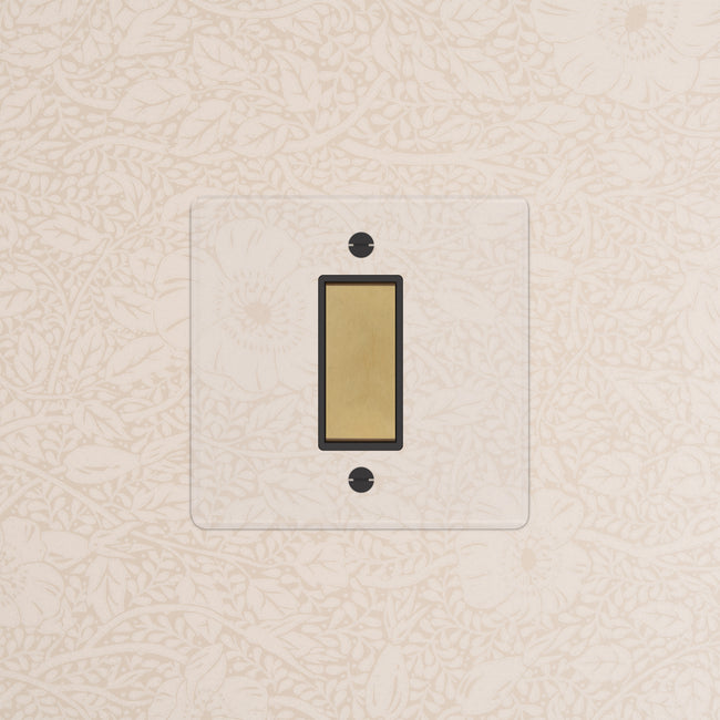 Our clear switches and sockets come with backing paper that you can either paint, or use as a wallpaper template. When you're happy with your chosen look, secure the clear front plate over the backing paper to conceal the wires.