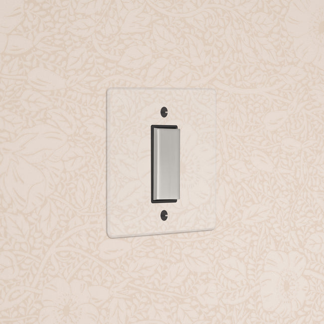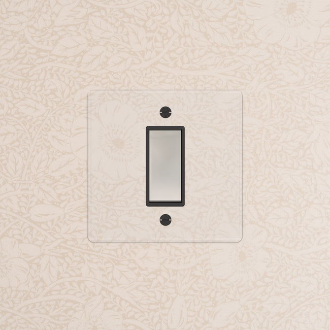 Our clear switches and sockets come with backing paper that you can either paint, or use as a wallpaper template. When you're happy with your chosen look, secure the clear front plate over the backing paper to conceal the wires.