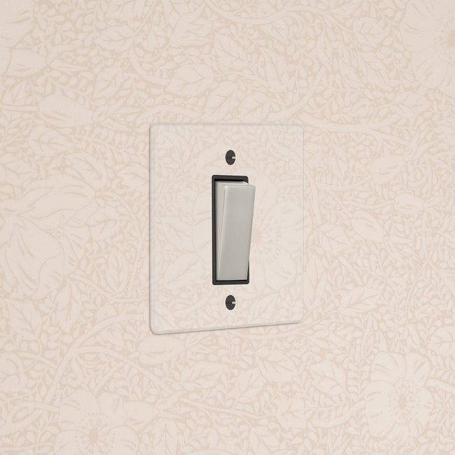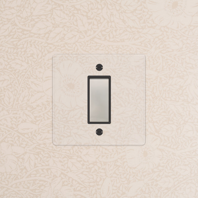 Our clear switches and sockets come with backing paper that you can either paint, or use as a wallpaper template. When you're happy with your chosen look, secure the clear front plate over the backing paper to conceal the wires.