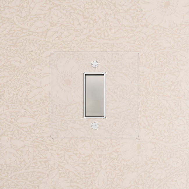 Our clear switches and sockets come with backing paper that you can either paint, or use as a wallpaper template. When you're happy with your chosen look, secure the clear front plate over the backing paper to conceal the wires.