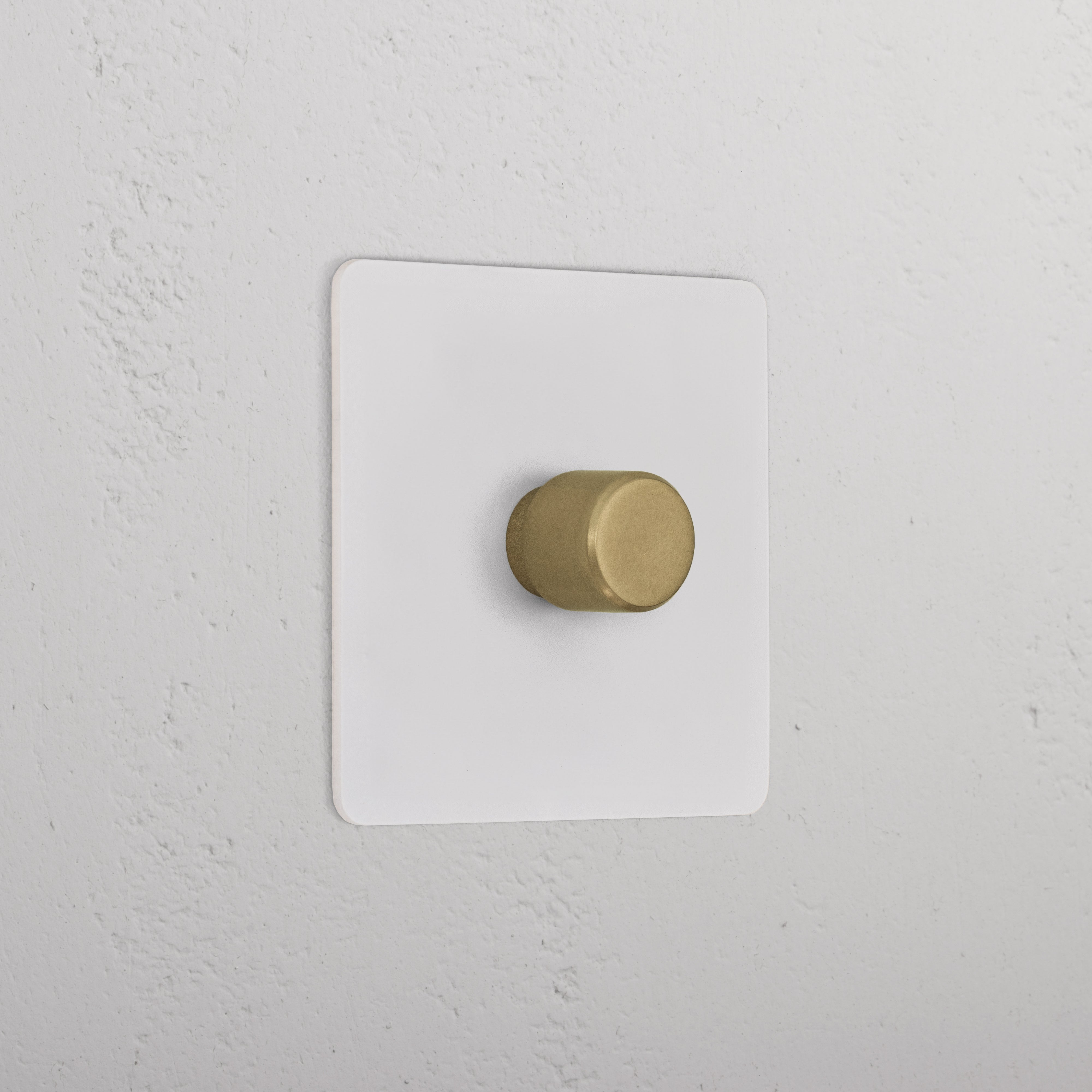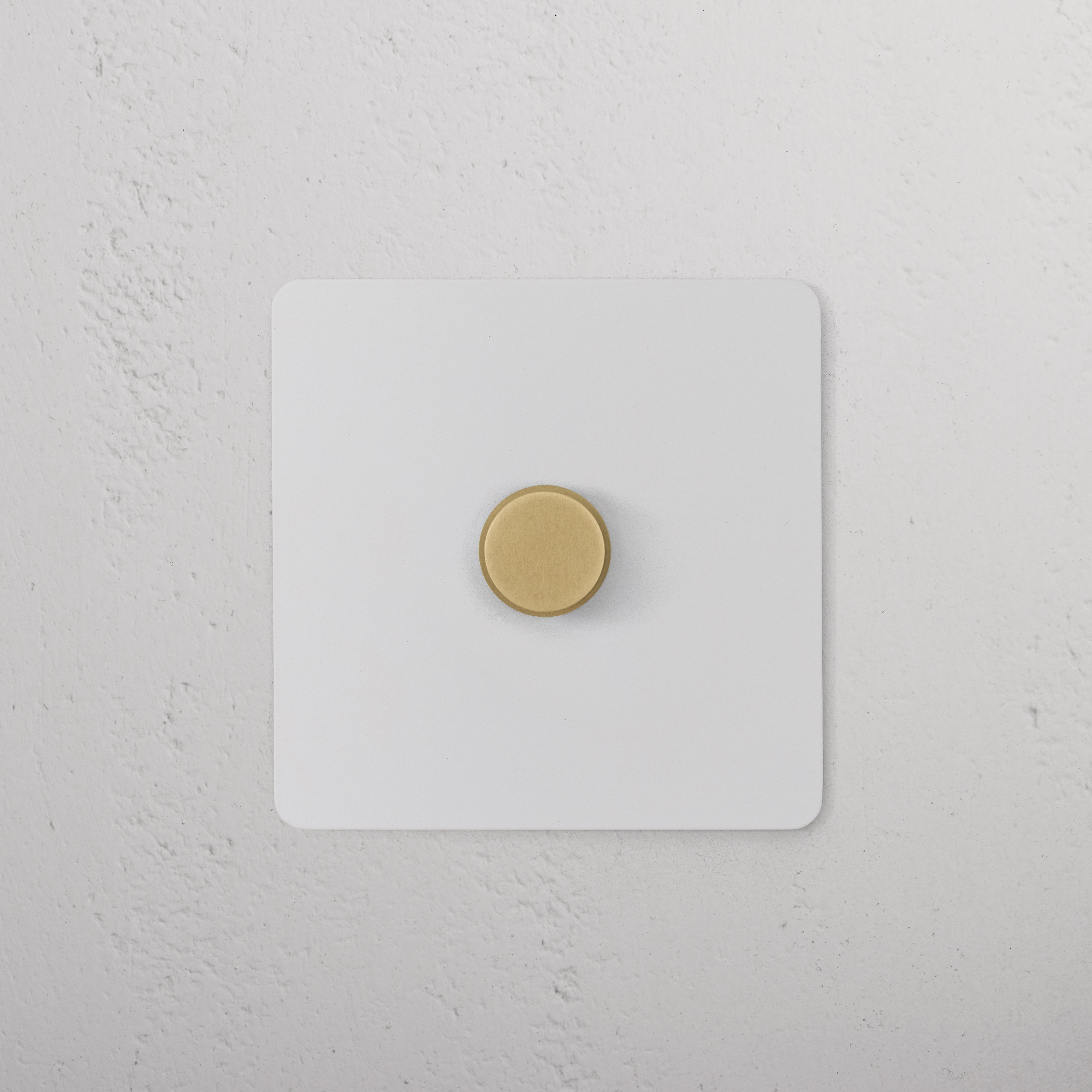 We prepare our paintable plates using our own etch primer, so you can easily paint them the same colour as your walls. The dimmer is finished in antique brass.