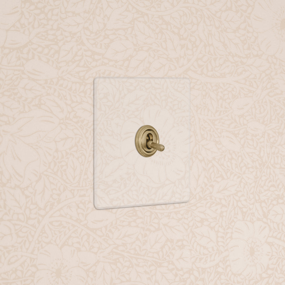 We make our clear collection from polycarbonate, which is more flexible and durable than the usual acrylic. The toggle is made from solid brass in our bronze finish.