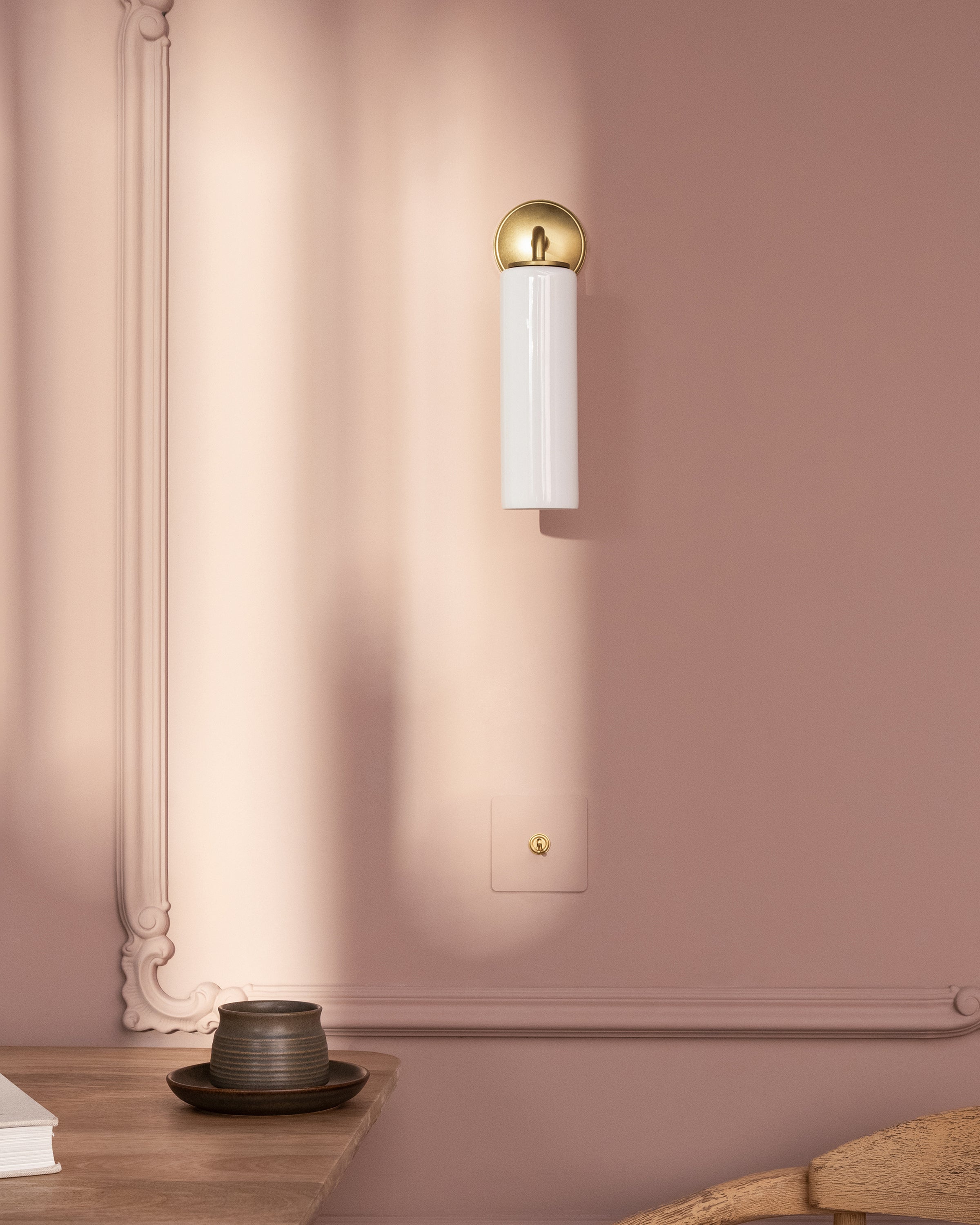 We prepare our paintable plates using our own etch primer, so you can easily paint them the same colour as your walls. The toggle is finished in bronze.