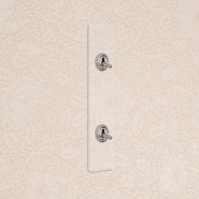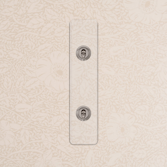 Our 2 gang architrave two-way toggle switch is a modern take on the classic dolly design. We’ve crafted it to be as sleek and timeless as possible in any interior setting.