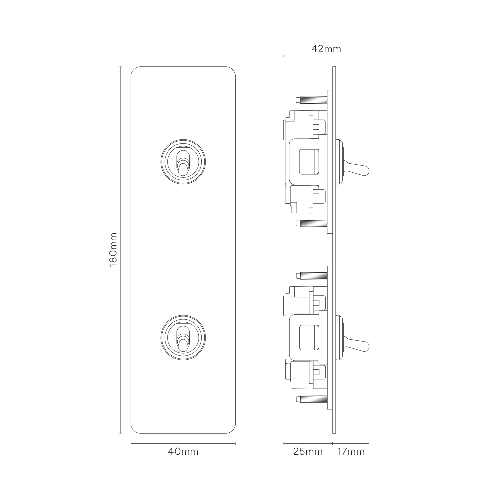 Our 2 gang architrave two-way toggle switch is a modern take on the classic dolly design. We’ve crafted it to be as sleek and timeless as possible in any interior setting.