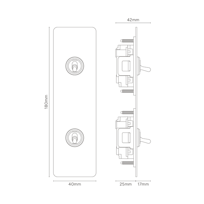 Our 2 gang architrave two-way toggle switch is a modern take on the classic dolly design. We’ve crafted it to be as sleek and timeless as possible in any interior setting.