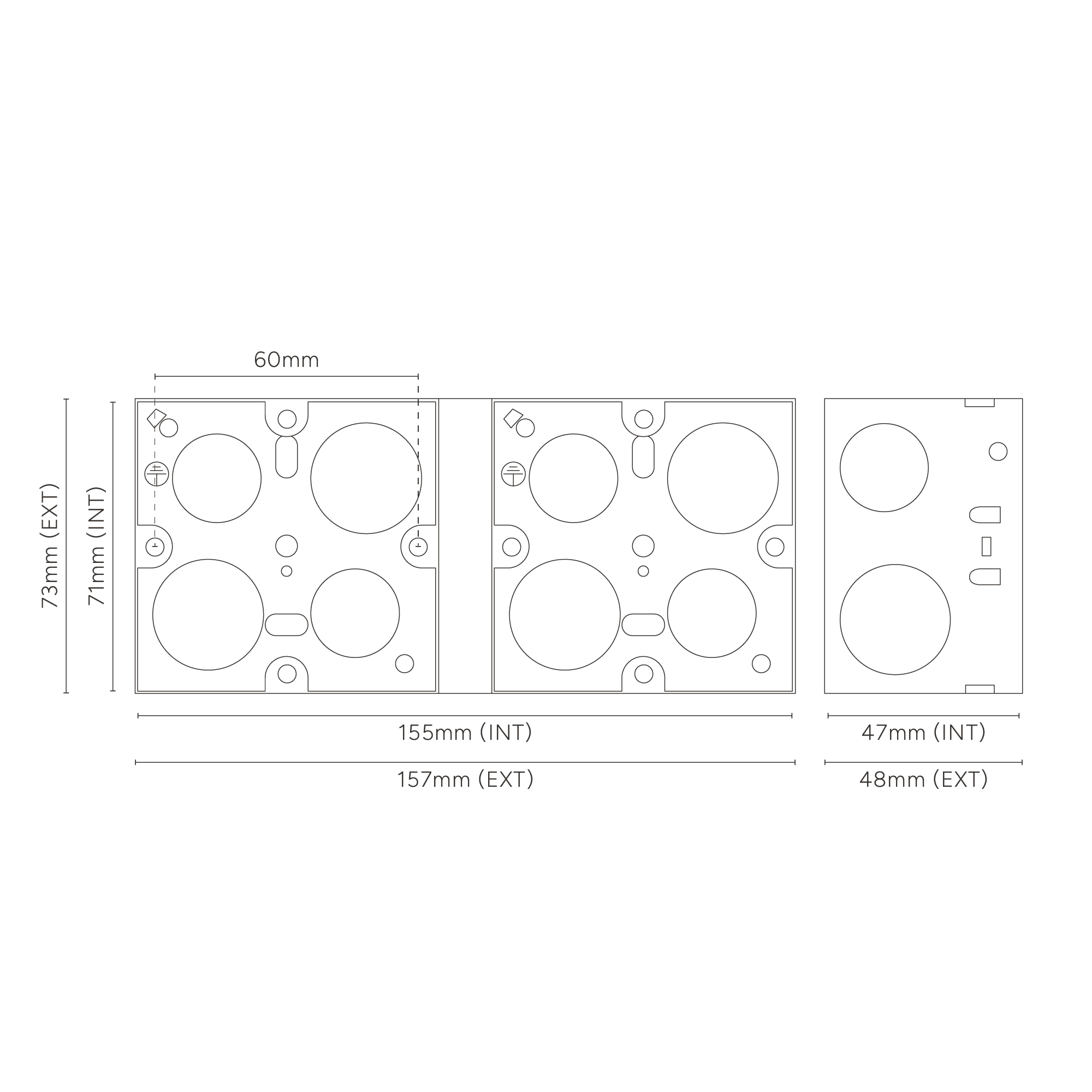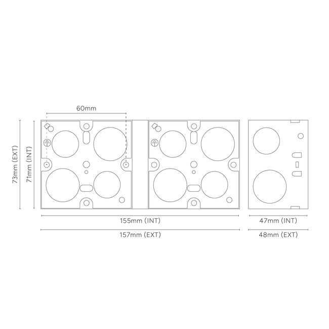 All Corston switches and sockets require a back box with a minimum depth of 35-47mm. It's the only way you'll achieve a flush finish. Our 6G and 8G switches must be used with a Corston double metal back box. because of the bespoke size.