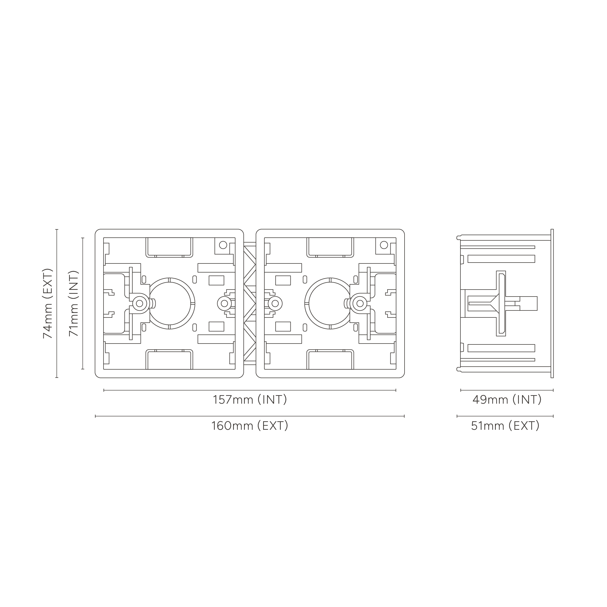 All Corston switches and sockets require a back box with a minimum depth of 35-47mm. It's the only way you'll achieve a flush finish. Our 6G and 8G switches must be used with a Corston double metal back box. because of the bespoke size.