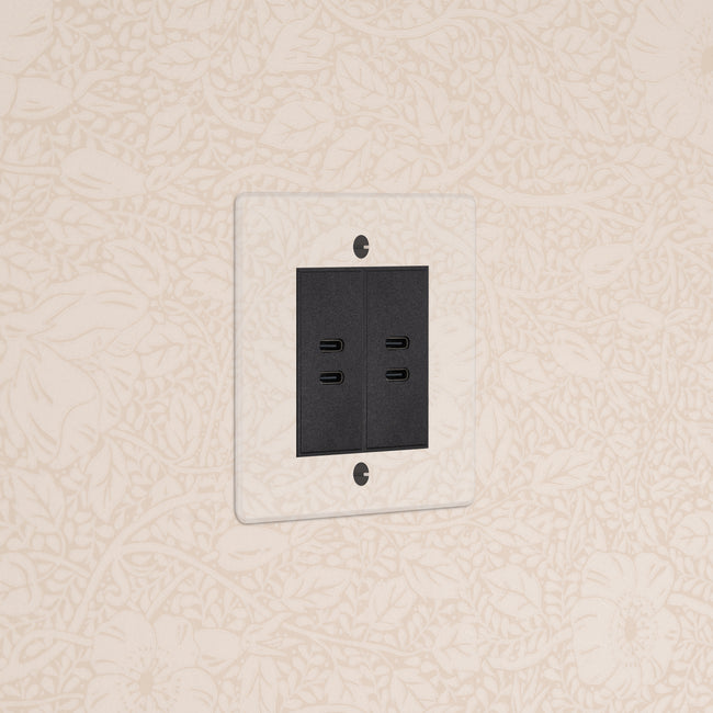 Our single 2x USB-C+C socket is crafted to be as sleek and timeless as possible in any interior setting.