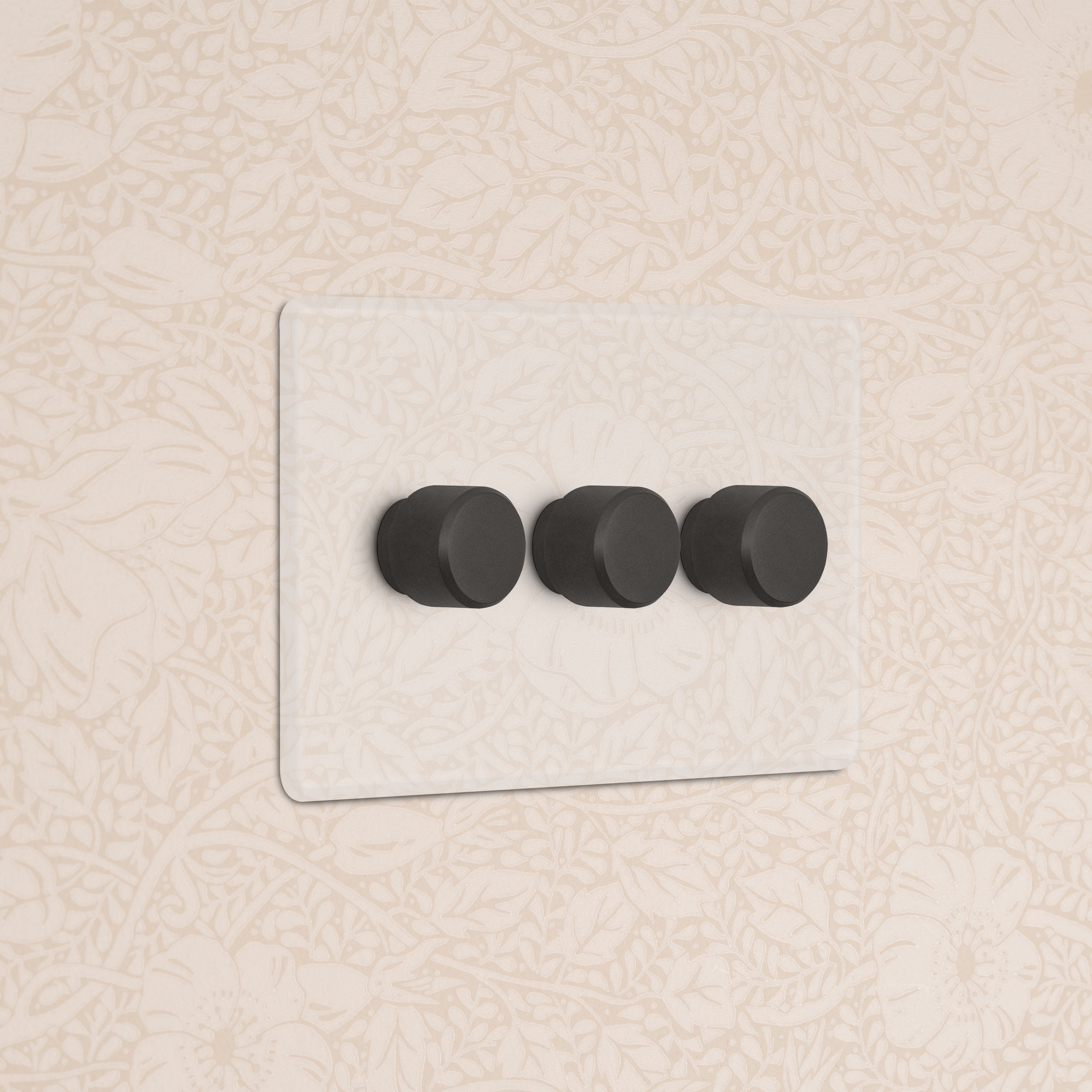 Our 3 gang two-way rotary dimmer switch is crafted to be as sleek and timeless as possible in any interior setting.