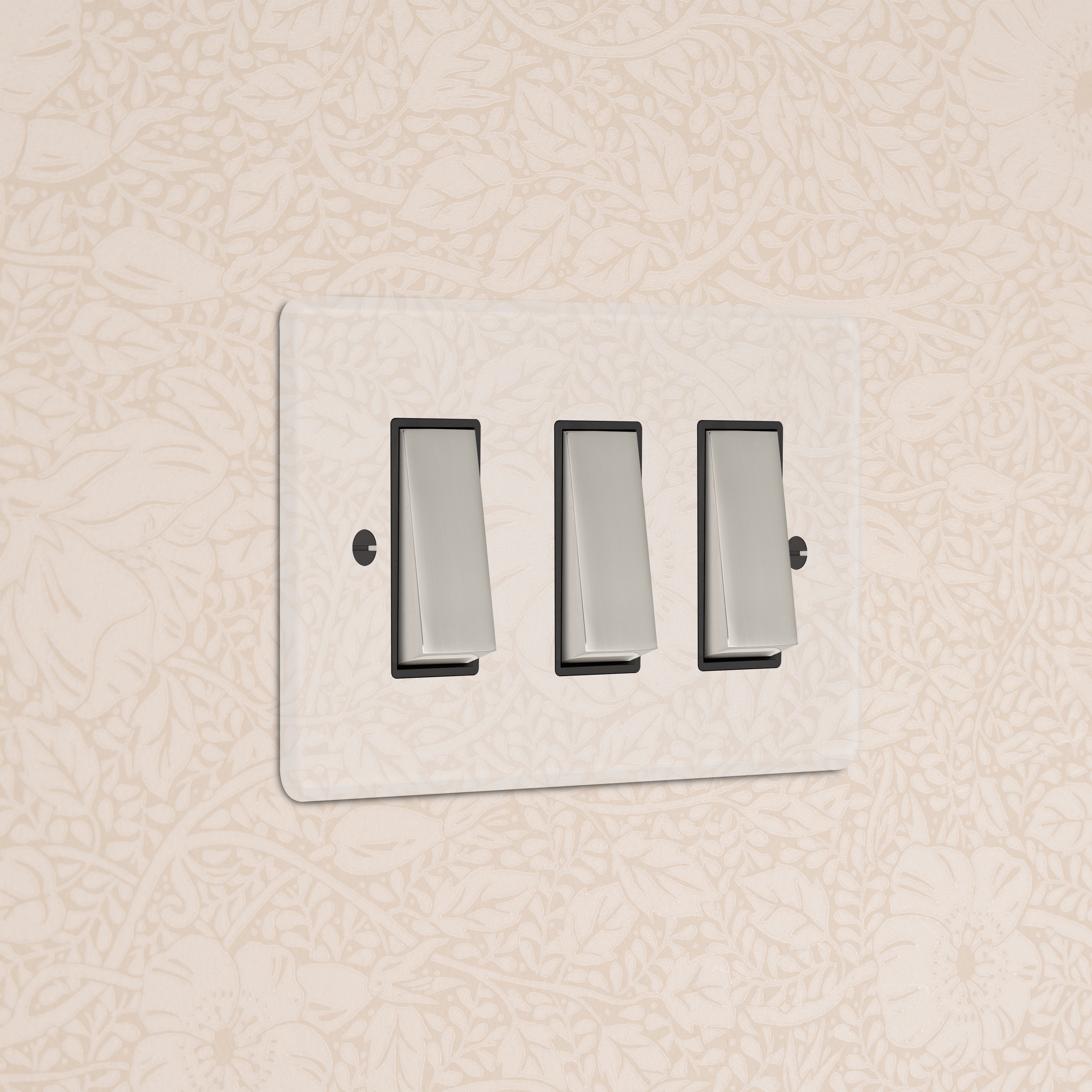 Our 3 gang two-way rocker switch is crafted to be as sleek and timeless as possible in any interior setting.