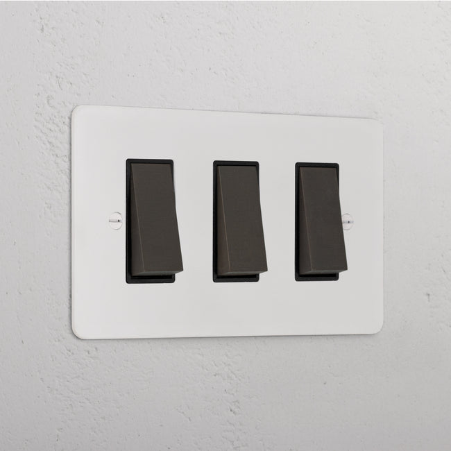 Our 3 gang two-way rocker switch is crafted to be as sleek and timeless as possible in any interior setting.