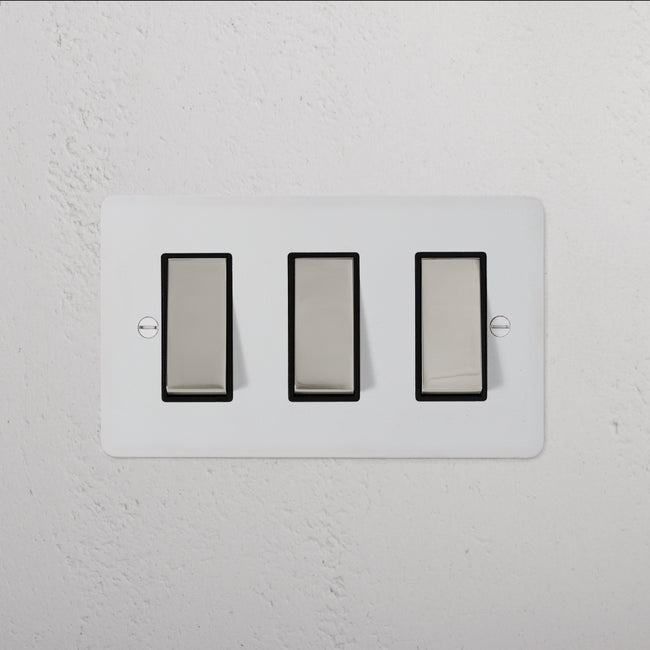 Our 3 gang two-way rocker switch is crafted to be as sleek and timeless as possible in any interior setting.