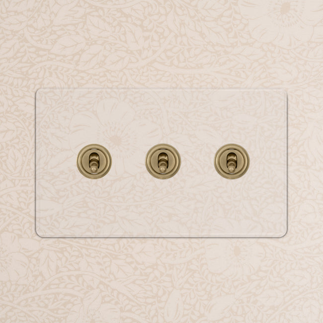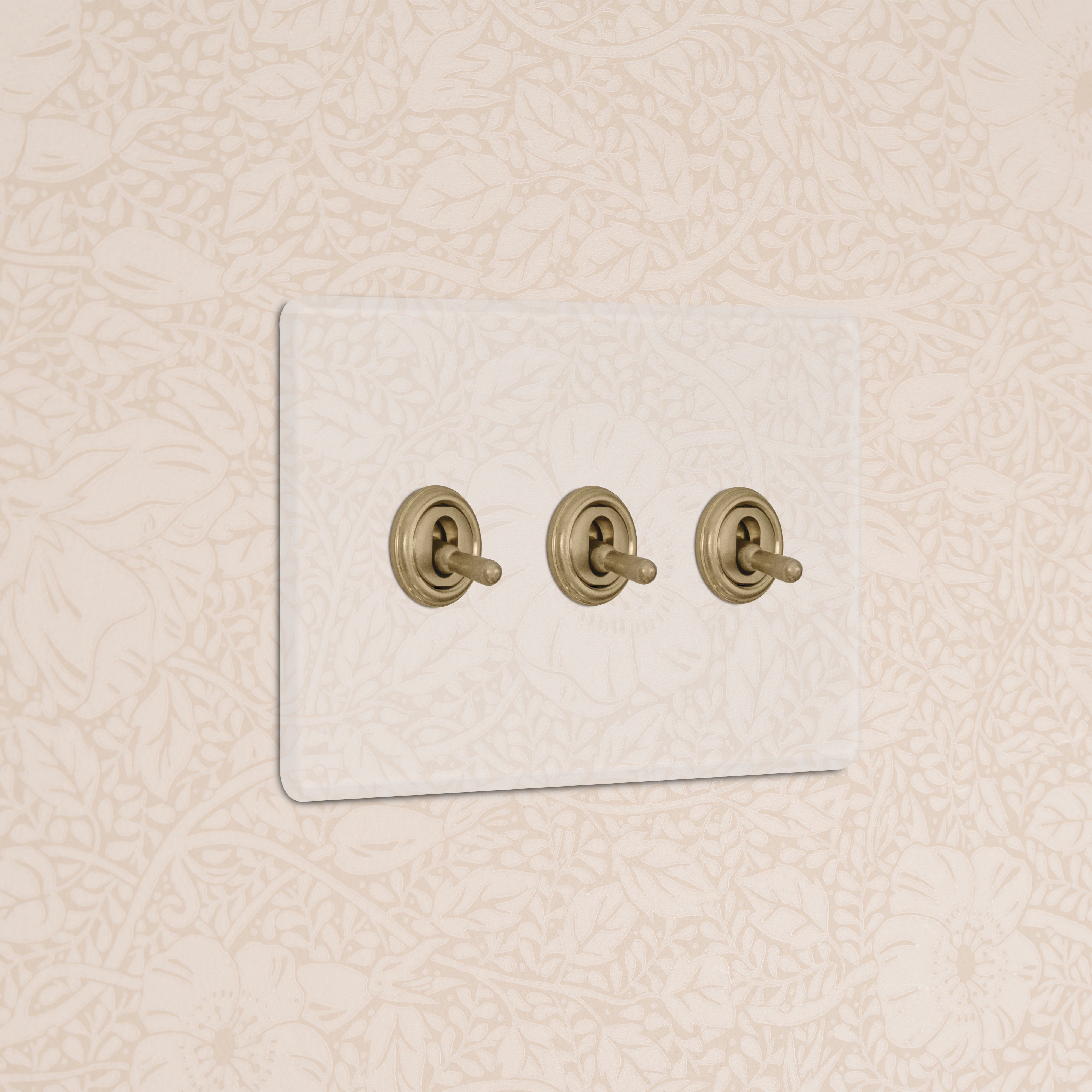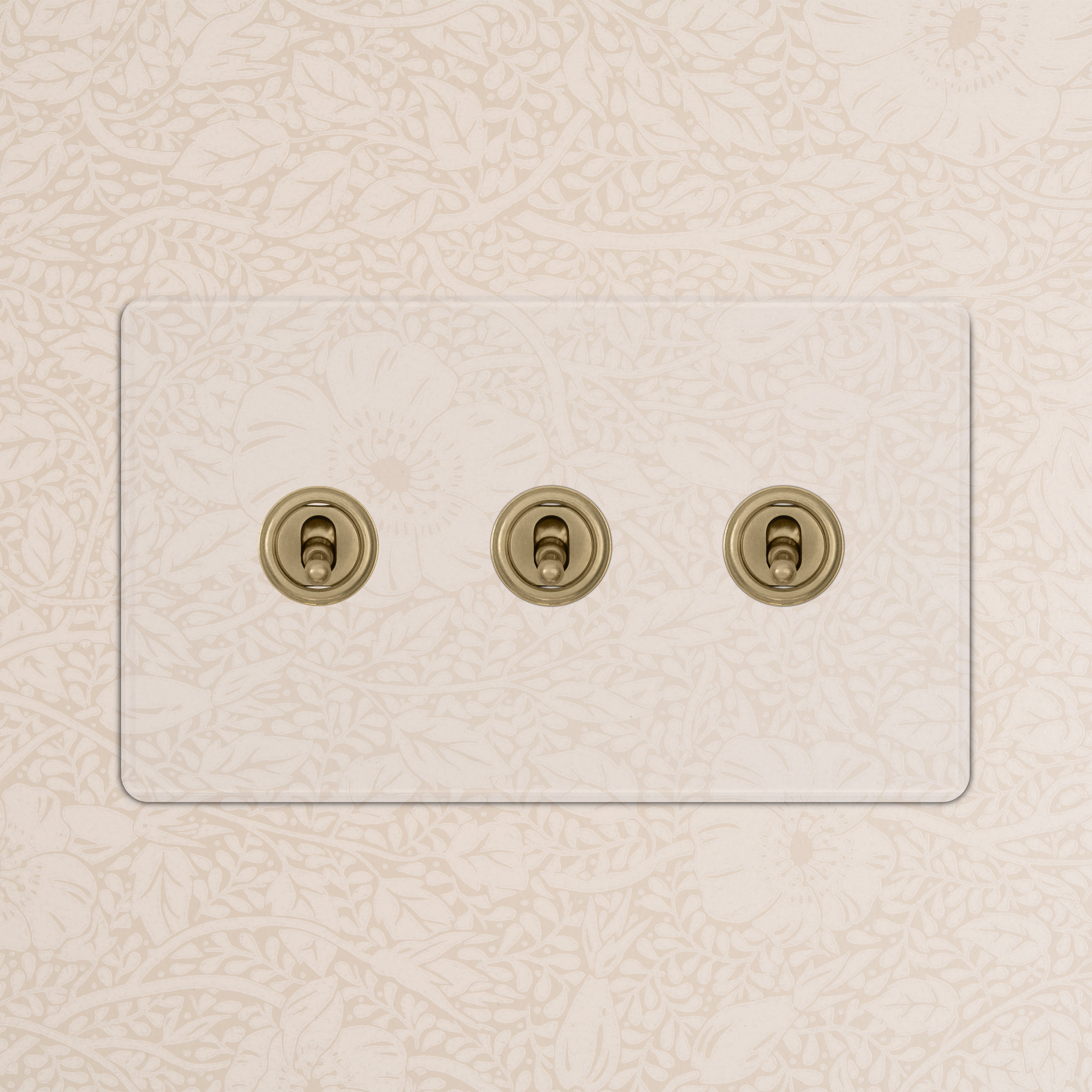 Our 3 gang two-way toggle switch is a modern take on the classic dolly design. We’ve crafted it to be as sleek and timeless as possible in any interior setting.
