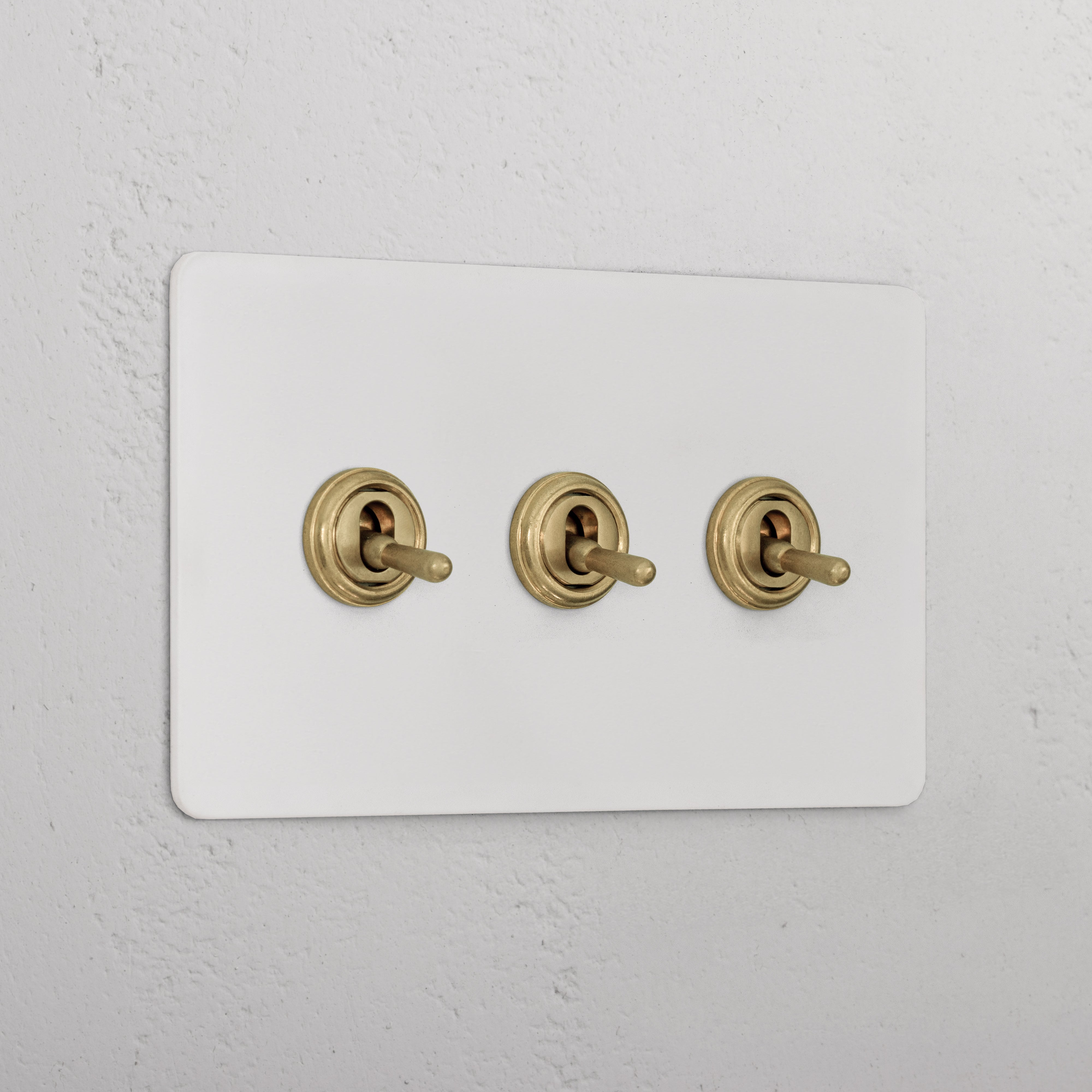 Our 3 gang two-way toggle switch is a modern take on the classic dolly design. We’ve crafted it to be as sleek and timeless as possible in any interior setting.