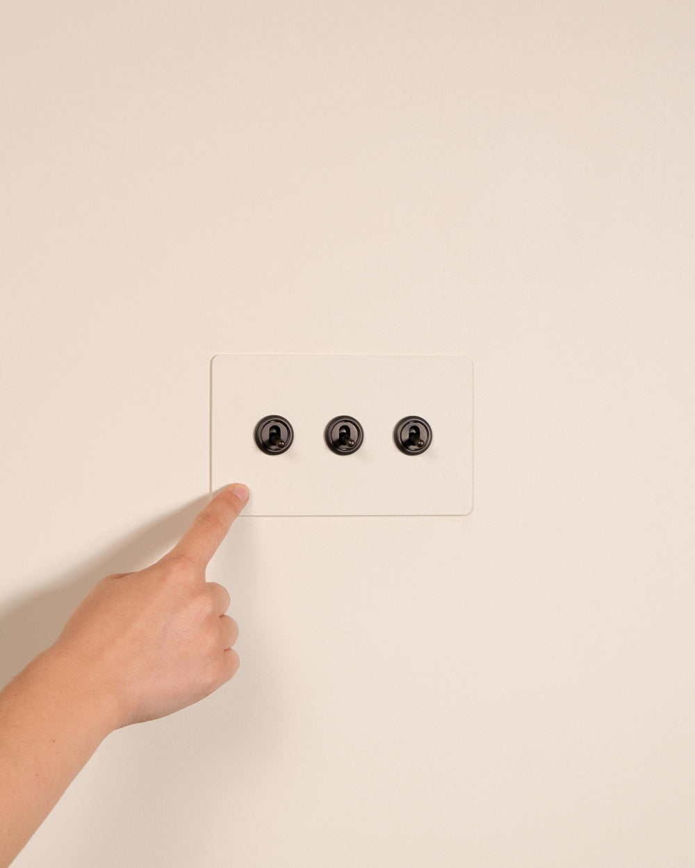 Our 3 gang two-way toggle switch is a modern take on the classic dolly design. We’ve crafted it to be as sleek and timeless as possible in any interior setting.