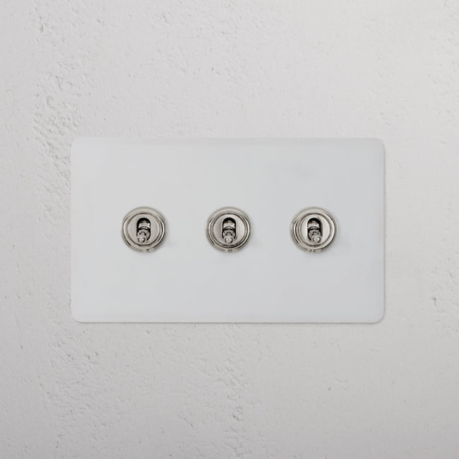 Our 3 gang two-way toggle switch is a modern take on the classic dolly design. We’ve crafted it to be as sleek and timeless as possible in any interior setting.