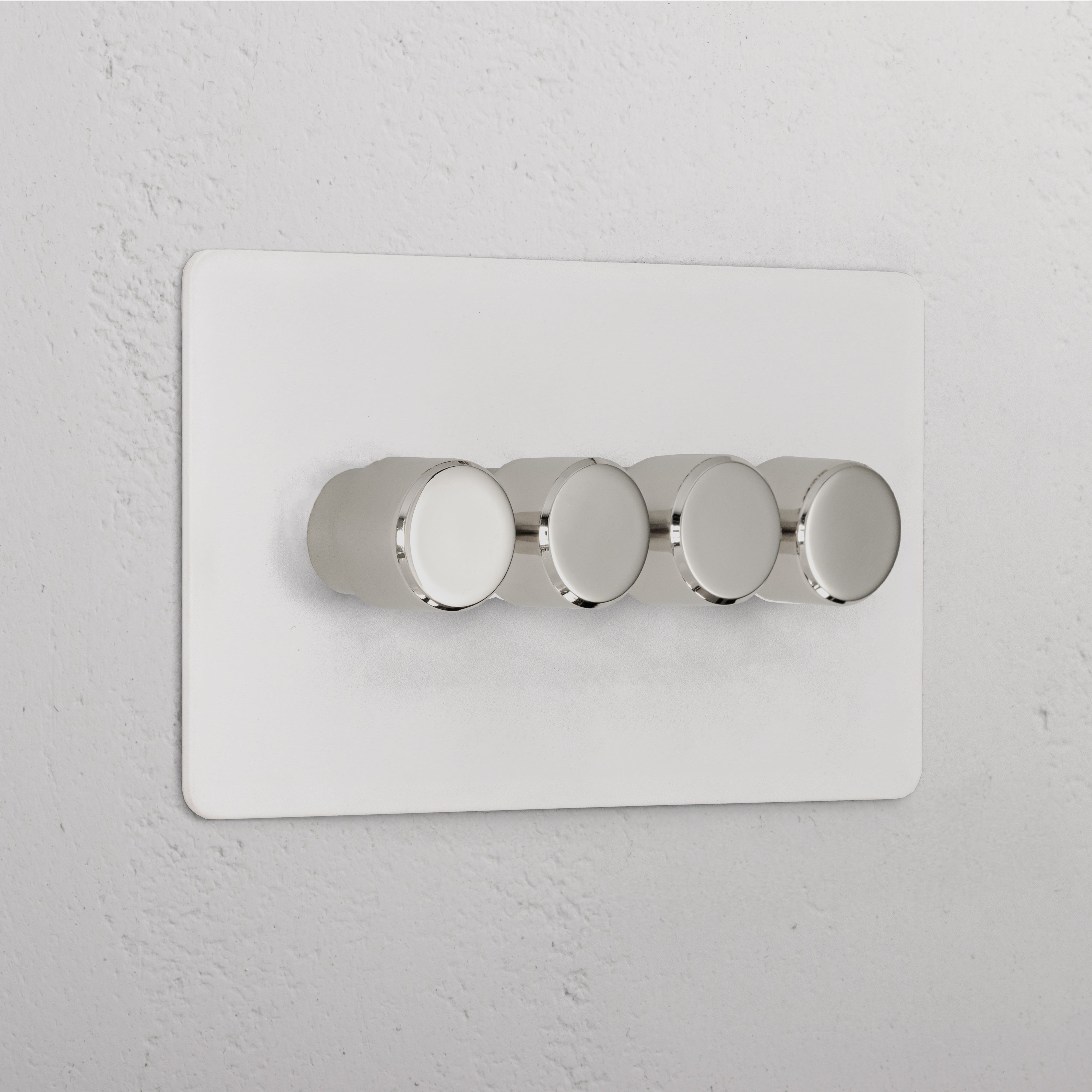 Our 4 gang two-way rotary dimmer switch is crafted to be as sleek and timeless as possible in any interior setting.