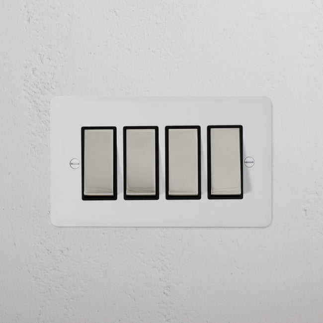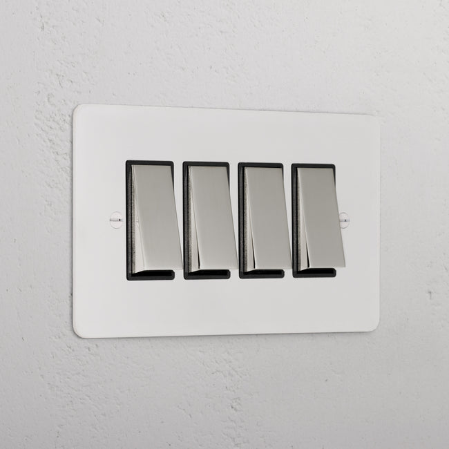 Our 4 gang two-way rocker switch is crafted to be as sleek and timeless as possible in any interior setting.