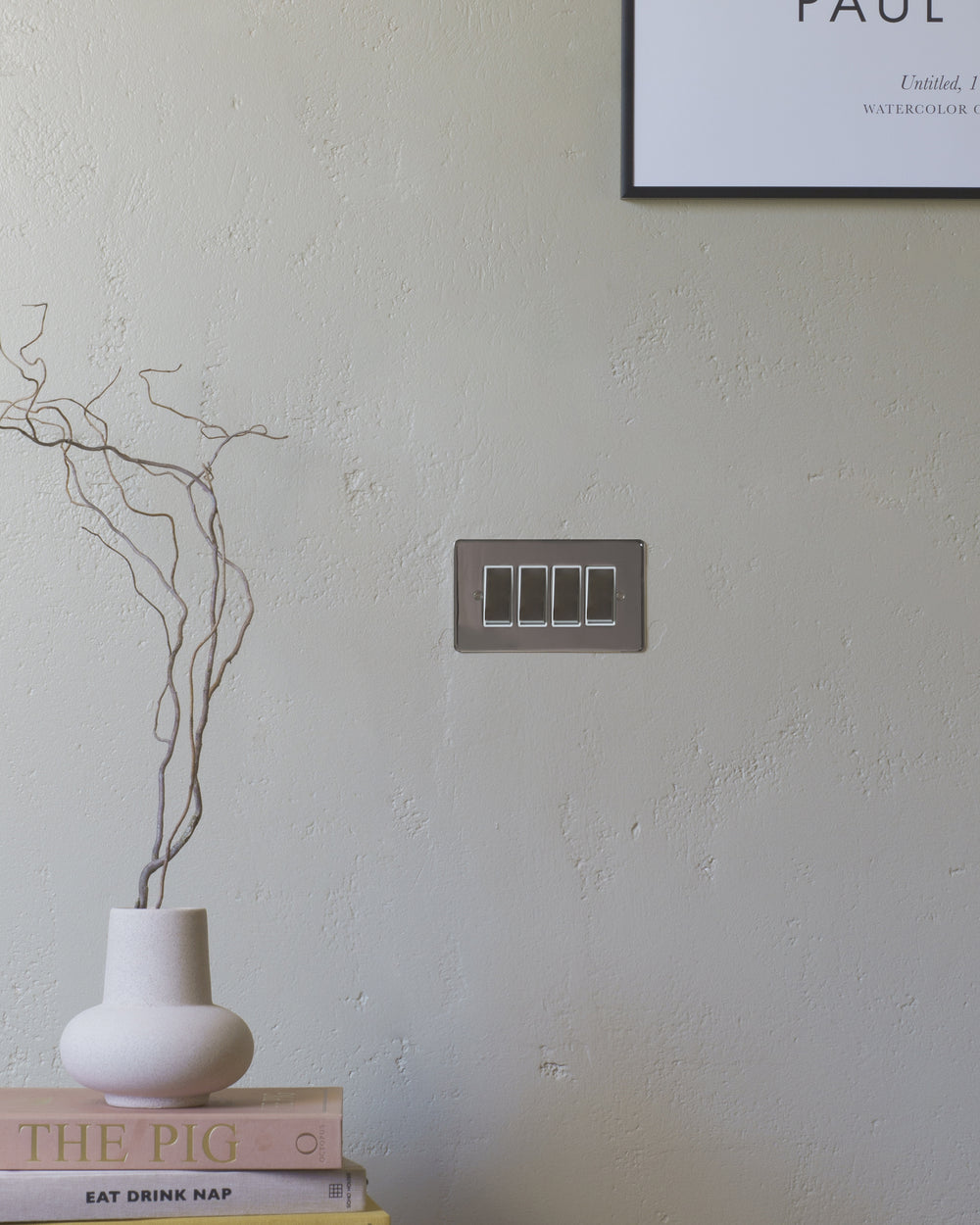 The switches and sockets in our collection are particularly subtle thanks to the really slim front plates that sit perfectly flush to the wall.