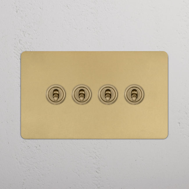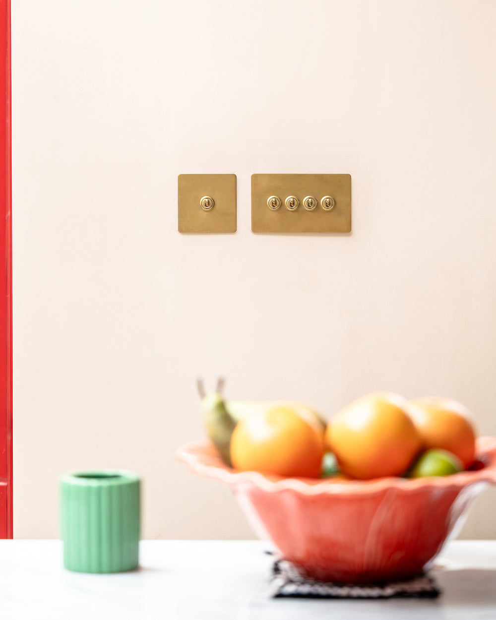 Our 4 gang two-way toggle switch is a modern take on the classic dolly design. We’ve crafted it to be as sleek and timeless as possible in any interior setting.