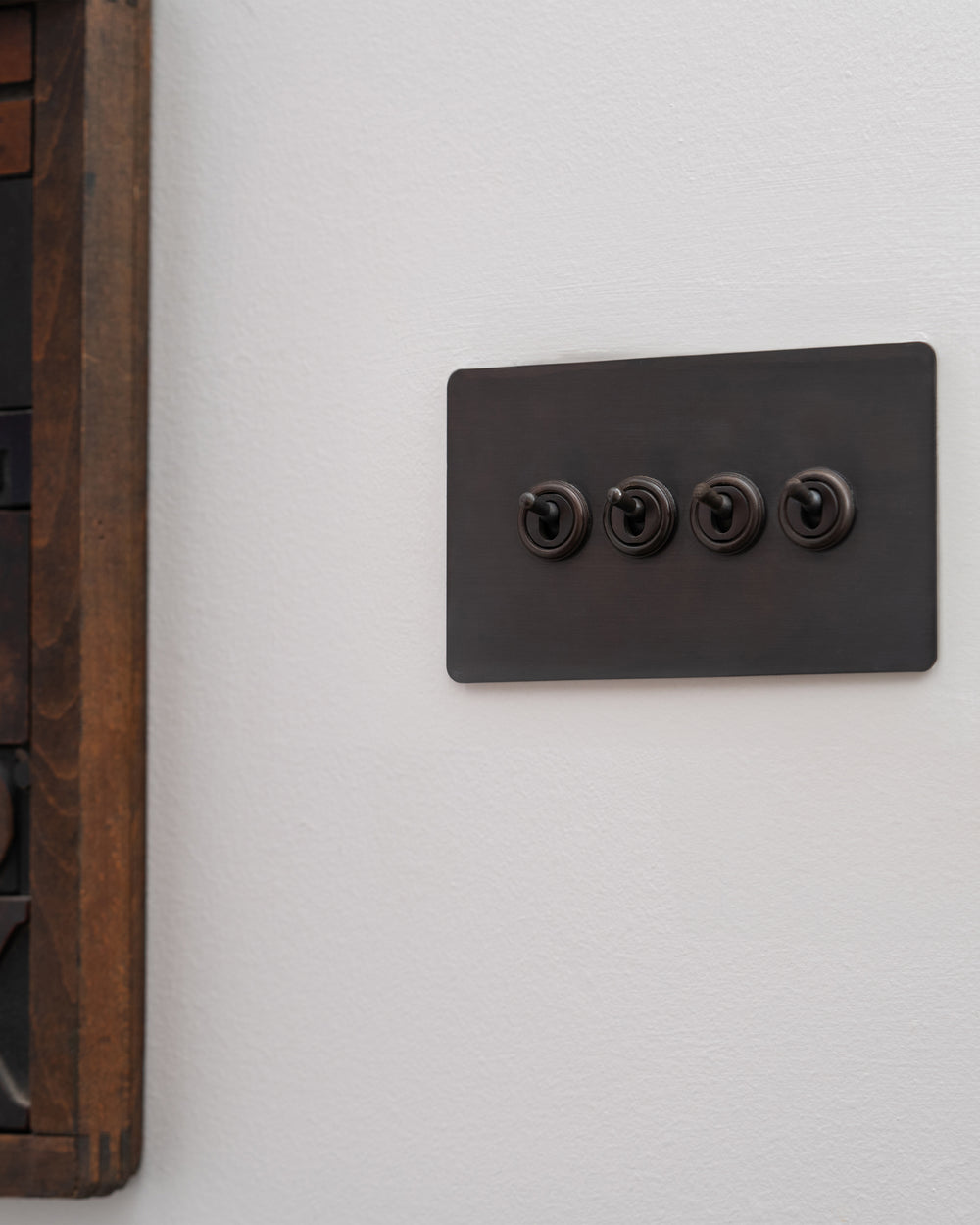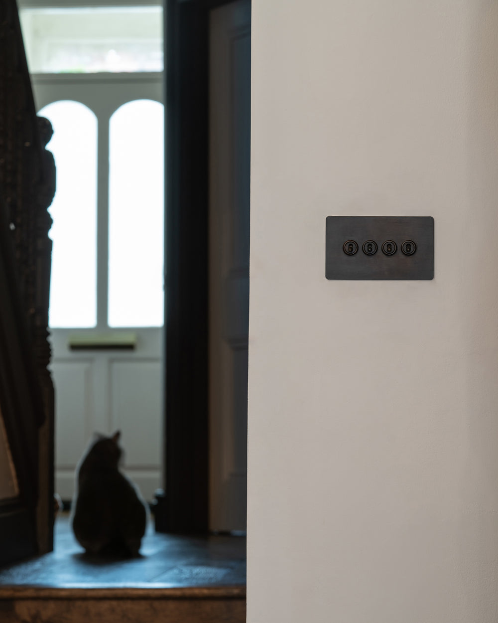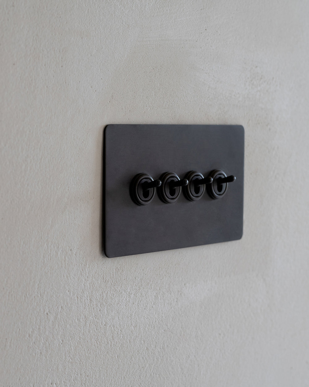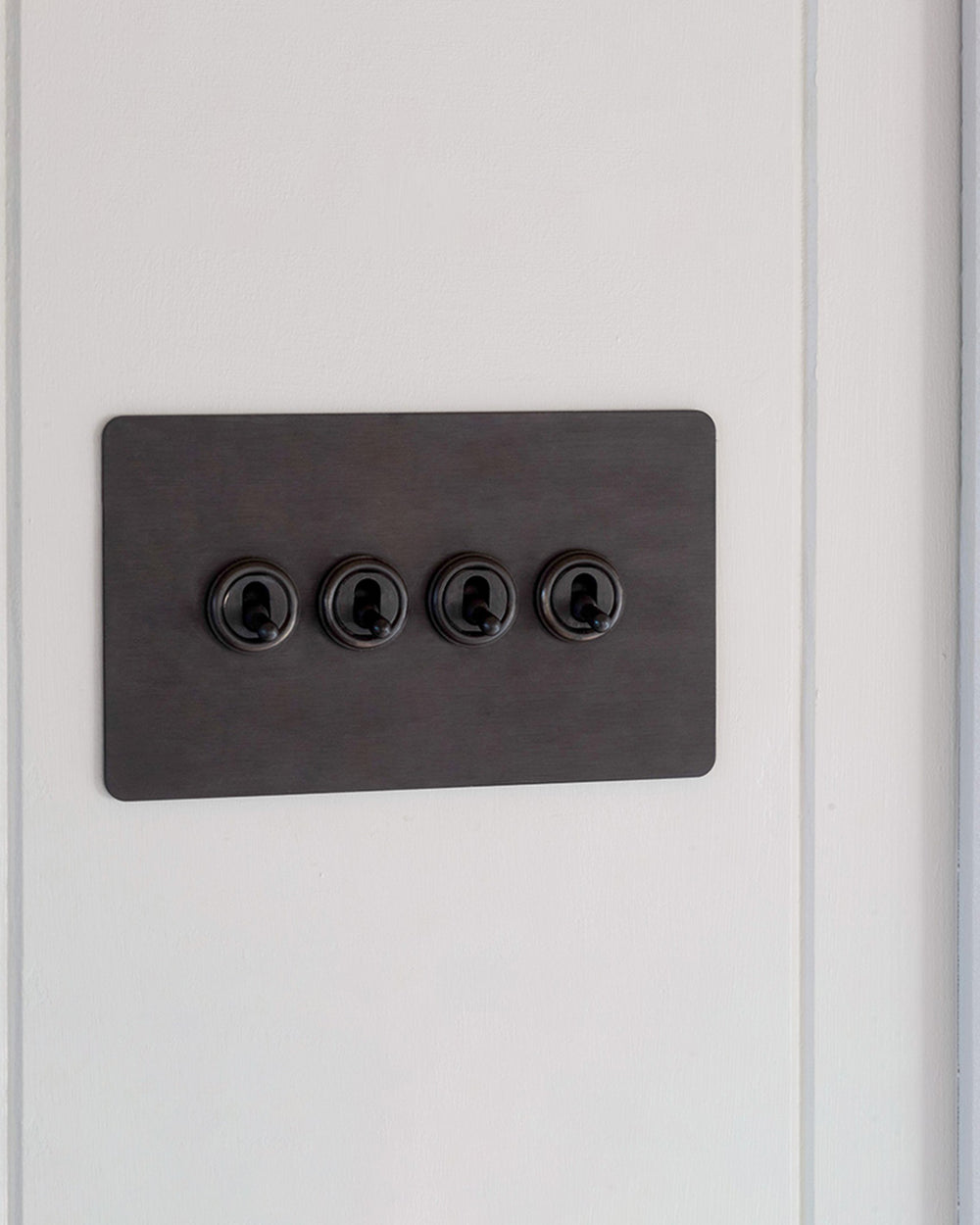 Our 4 gang two-way toggle switch is a modern take on the classic dolly design. We’ve crafted it to be as sleek and timeless as possible in any interior setting.