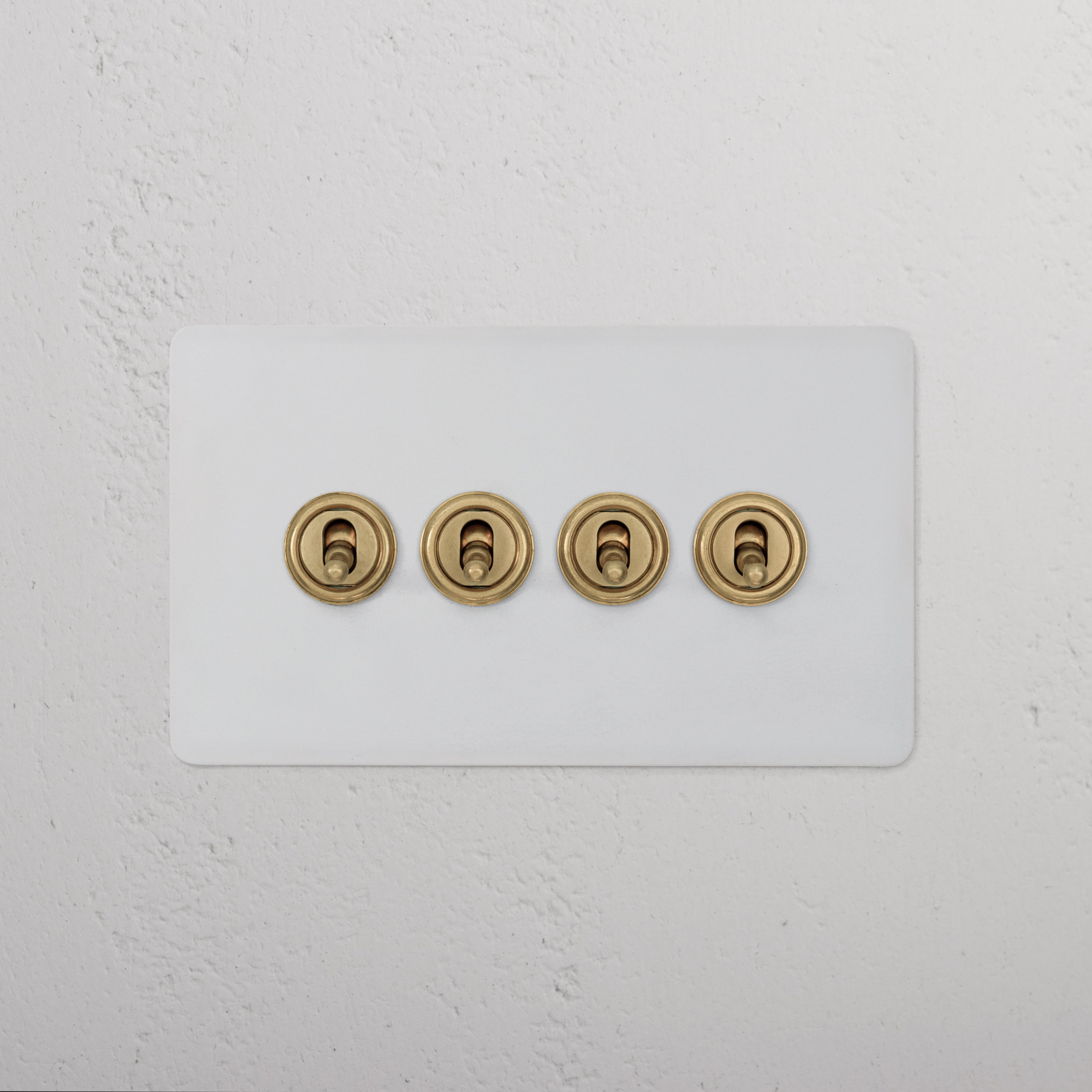 Our 4 gang two-way toggle switch is a modern take on the classic dolly design. We’ve crafted it to be as sleek and timeless as possible in any interior setting.