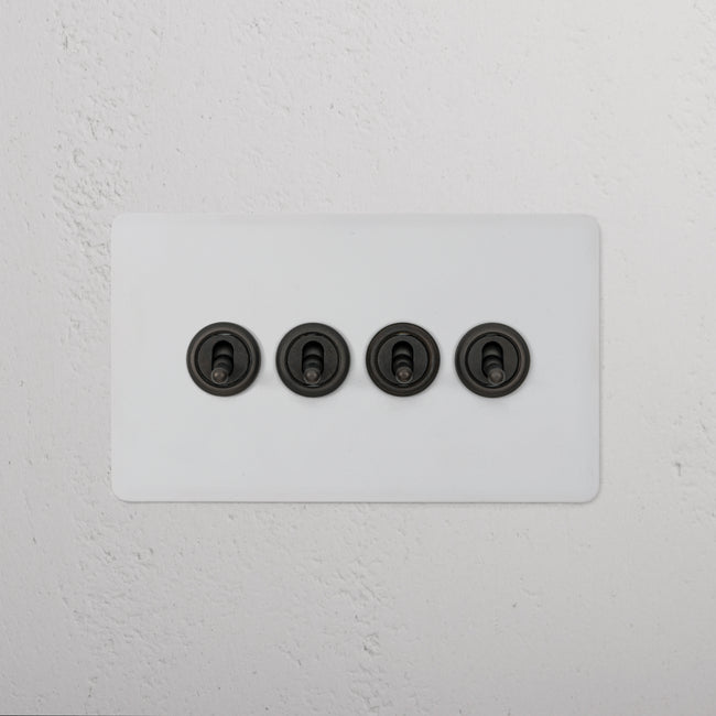 Our 4 gang two-way toggle switch is a modern take on the classic dolly design. We’ve crafted it to be as sleek and timeless as possible in any interior setting.