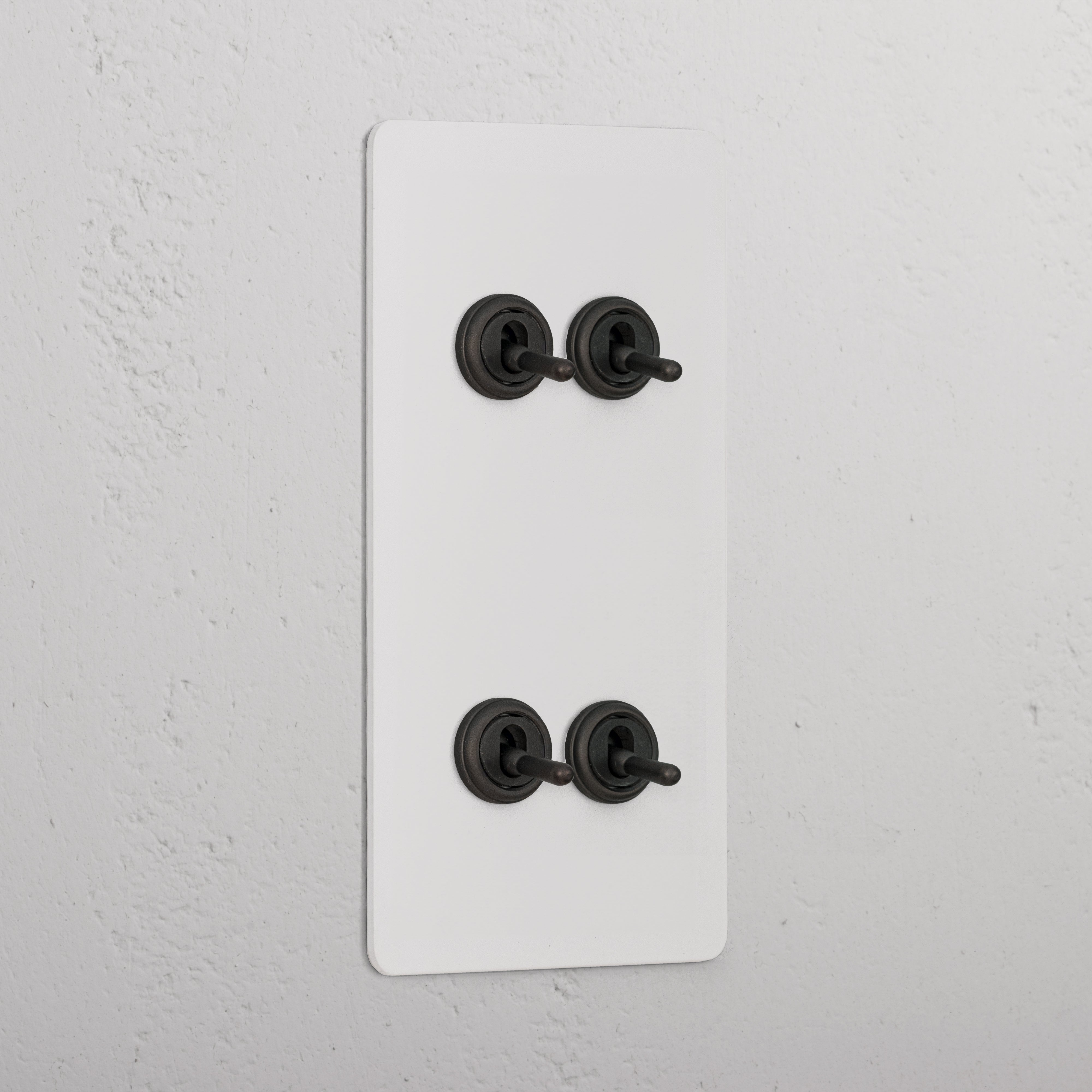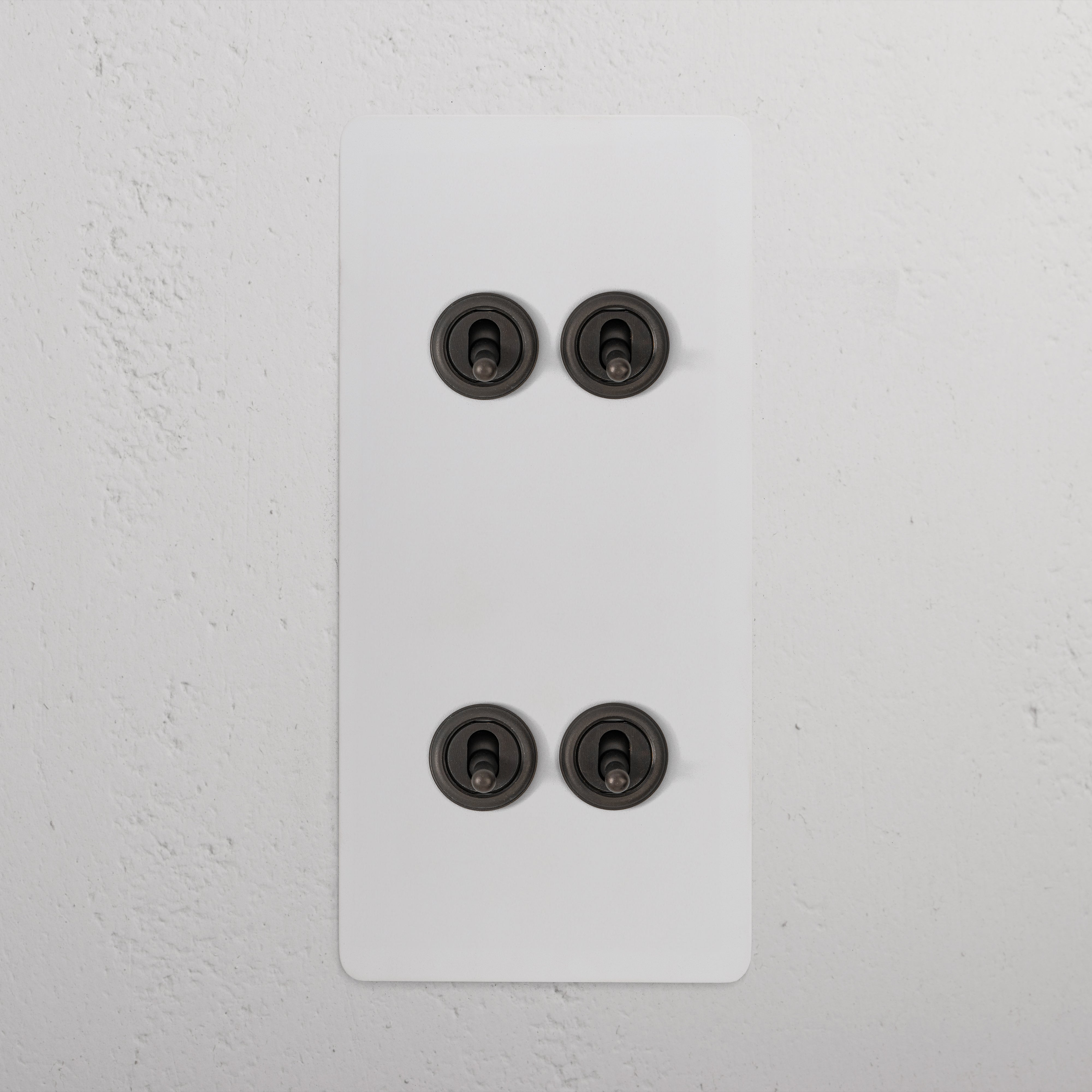 Our 4 gang vertical two-way toggle switch is a modern take on the classic dolly design. We’ve crafted it to be as sleek and timeless as possible in any interior setting.