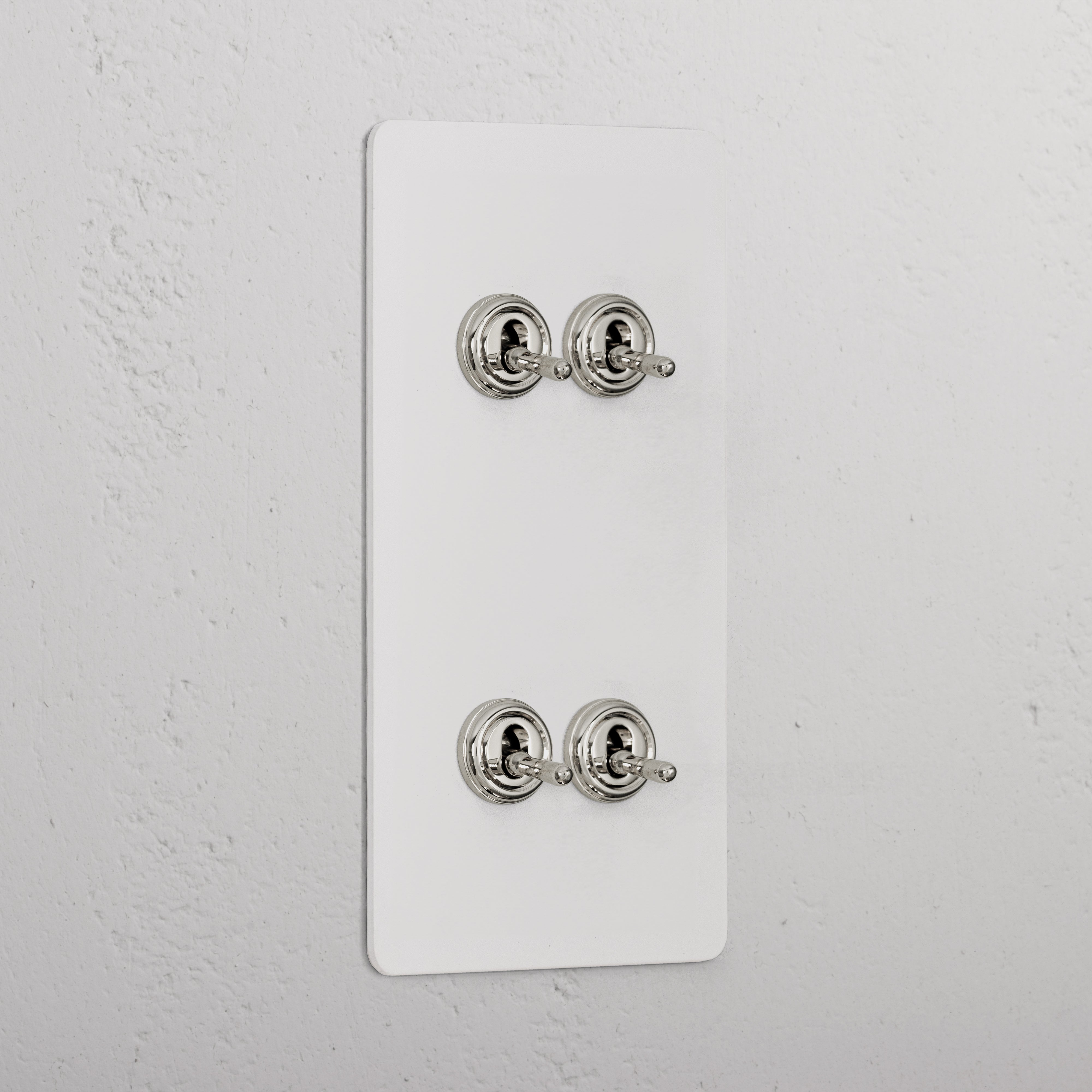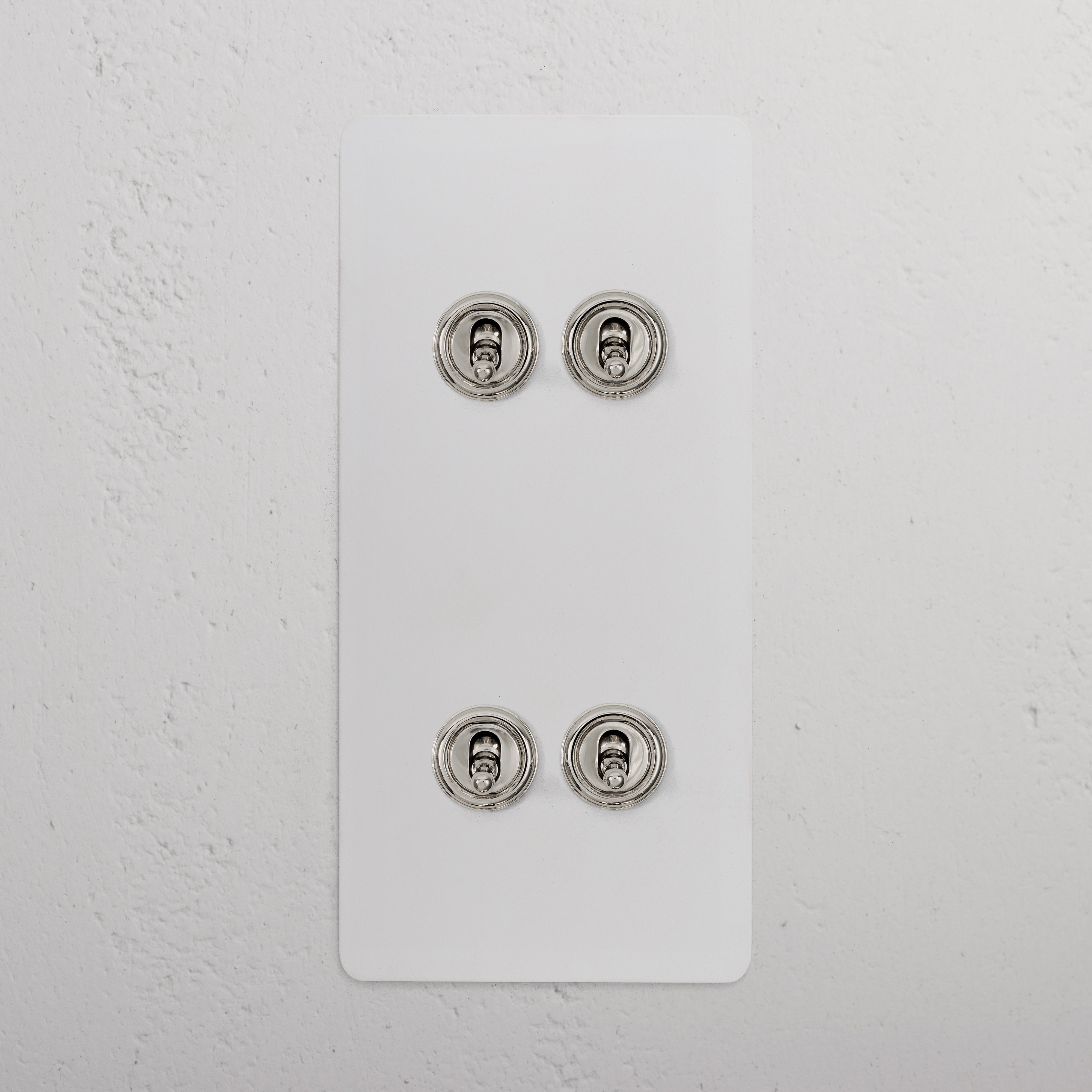 Our 4 gang vertical two-way toggle switch is a modern take on the classic dolly design. We’ve crafted it to be as sleek and timeless as possible in any interior setting.