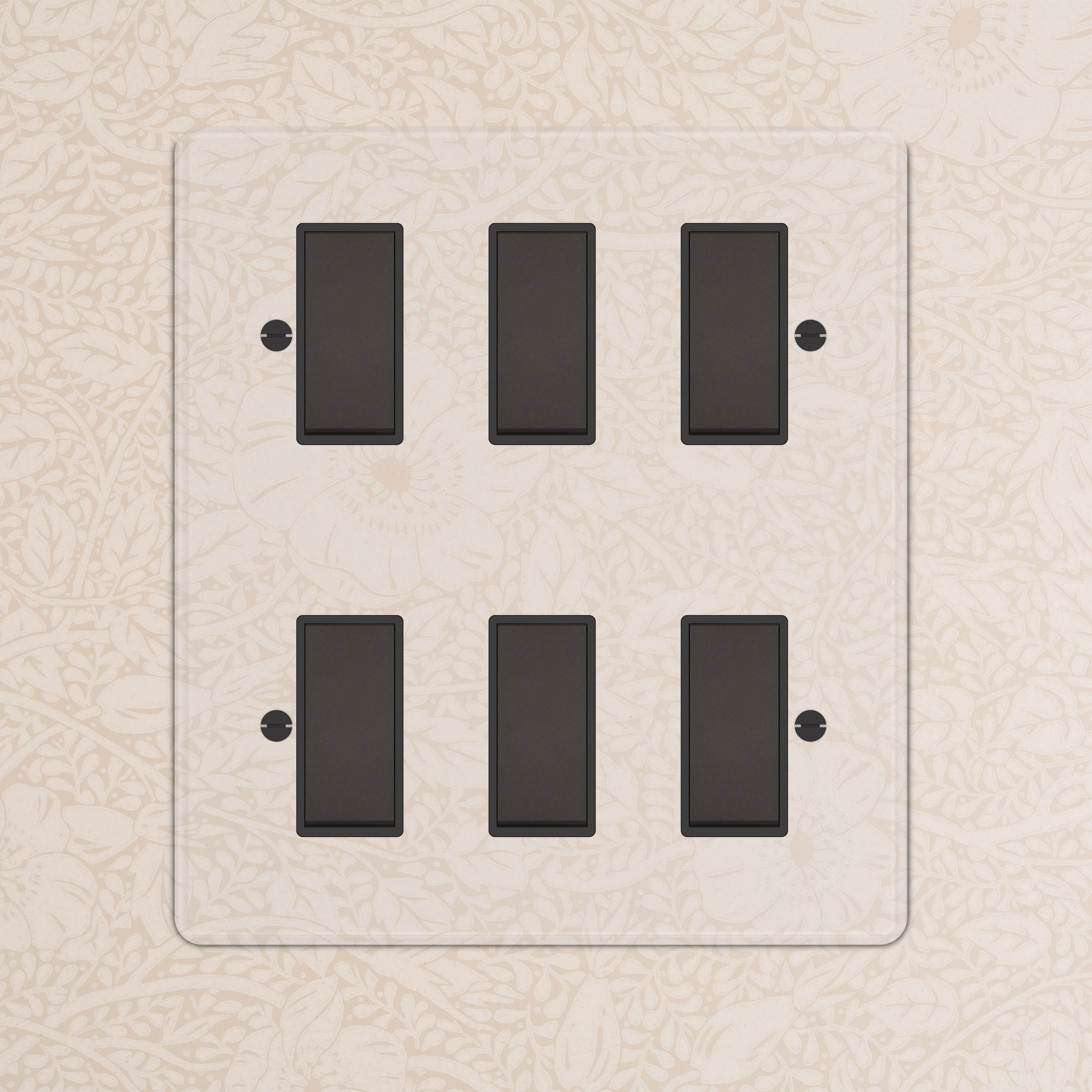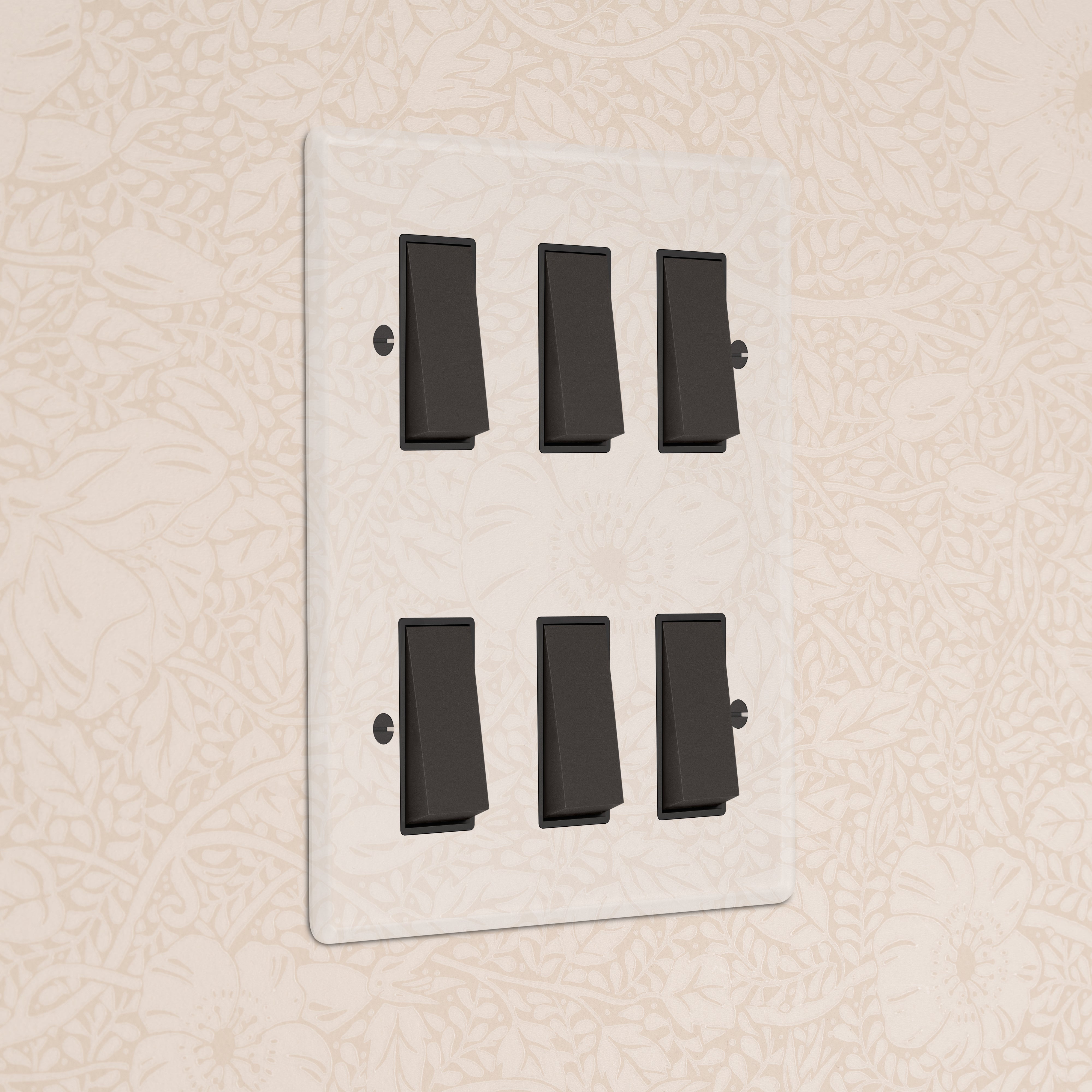 Our 6 gang two-way rocker switch is crafted to be as sleek and timeless as possible in any interior setting.