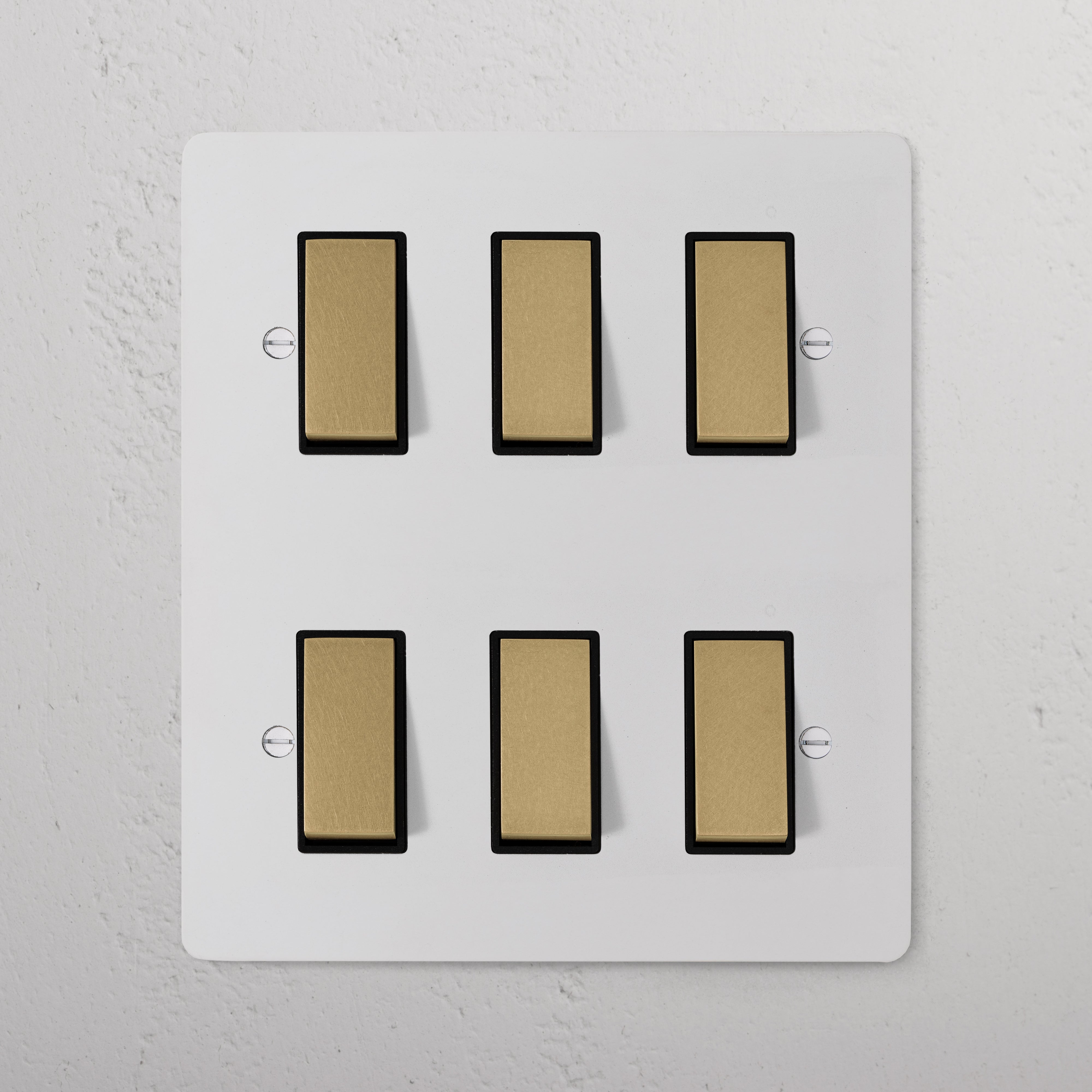 Our 6 gang two-way rocker switch is crafted to be as sleek and timeless as possible in any interior setting.