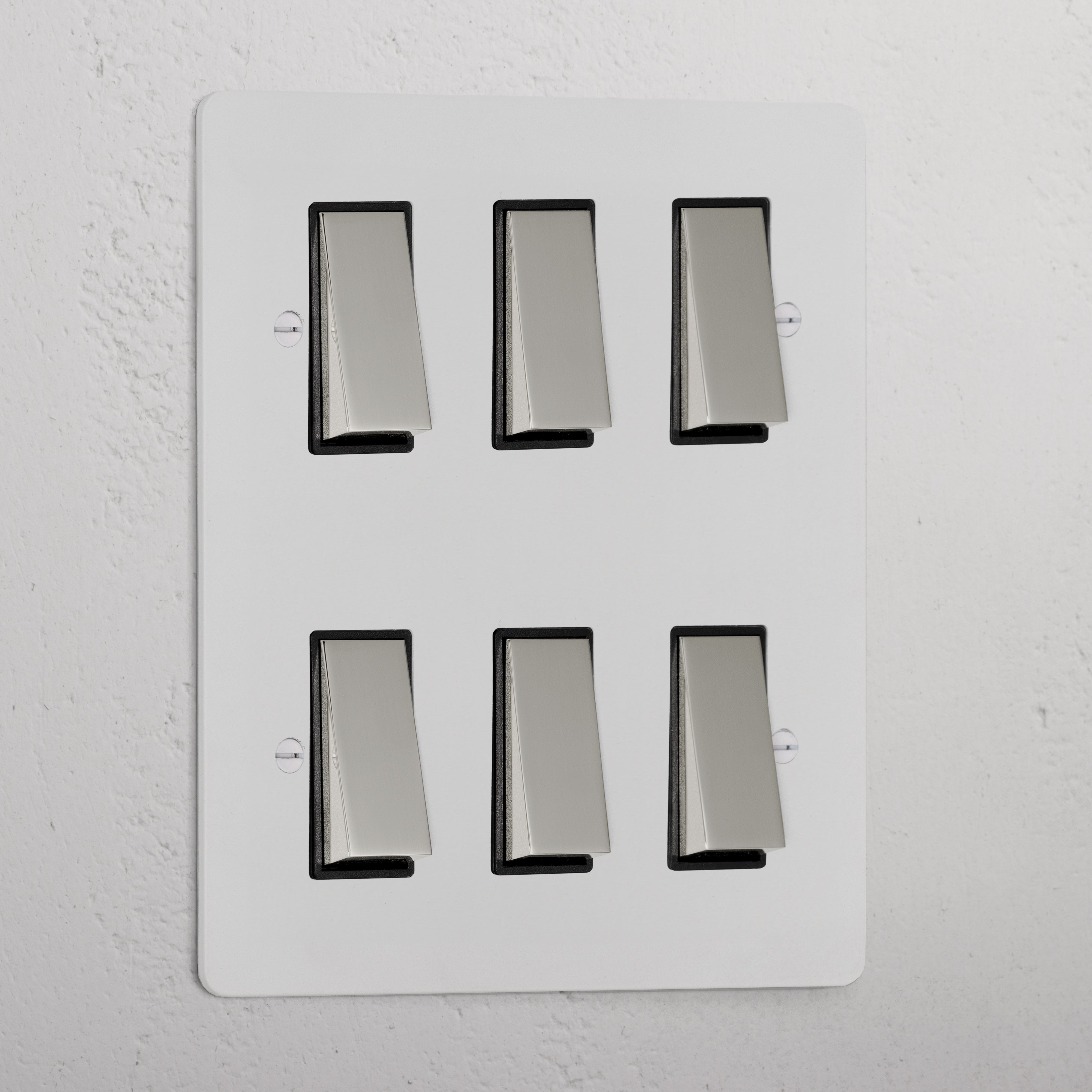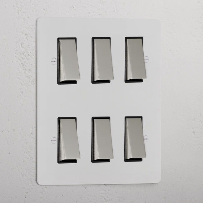 Our 6 gang two-way rocker switch is crafted to be as sleek and timeless as possible in any interior setting.