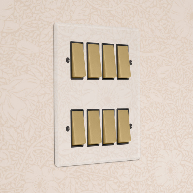 Our 8 gang two-way rocker switch is crafted to be as sleek and timeless as possible in any interior setting.