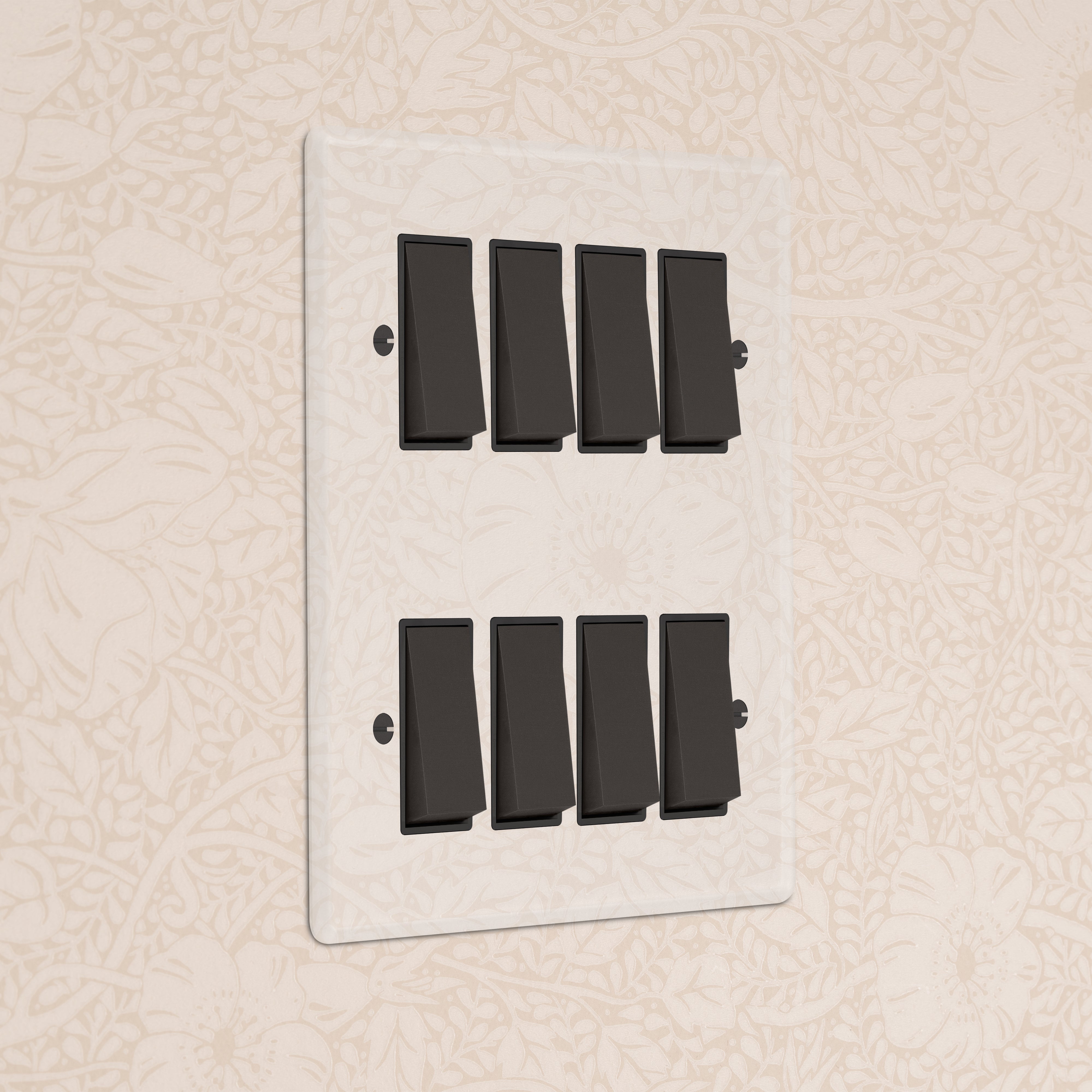 Our 8 gang two-way rocker switch is crafted to be as sleek and timeless as possible in any interior setting.