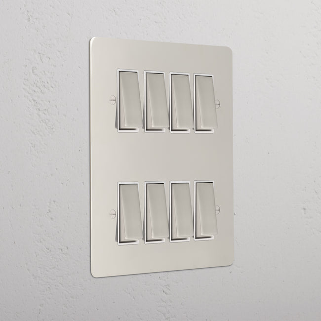 Our 8 gang two-way rocker switch is crafted to be as sleek and timeless as possible in any interior setting.