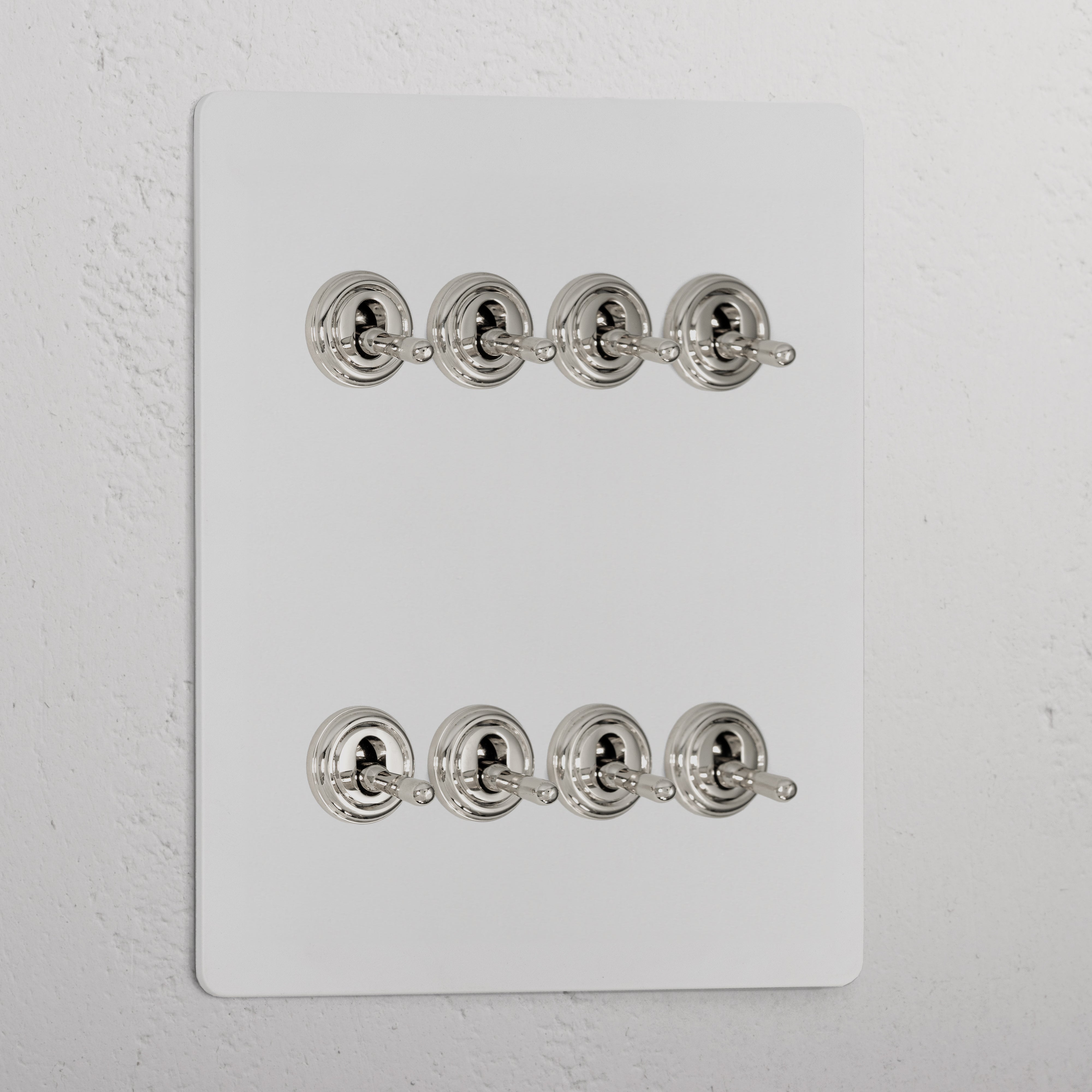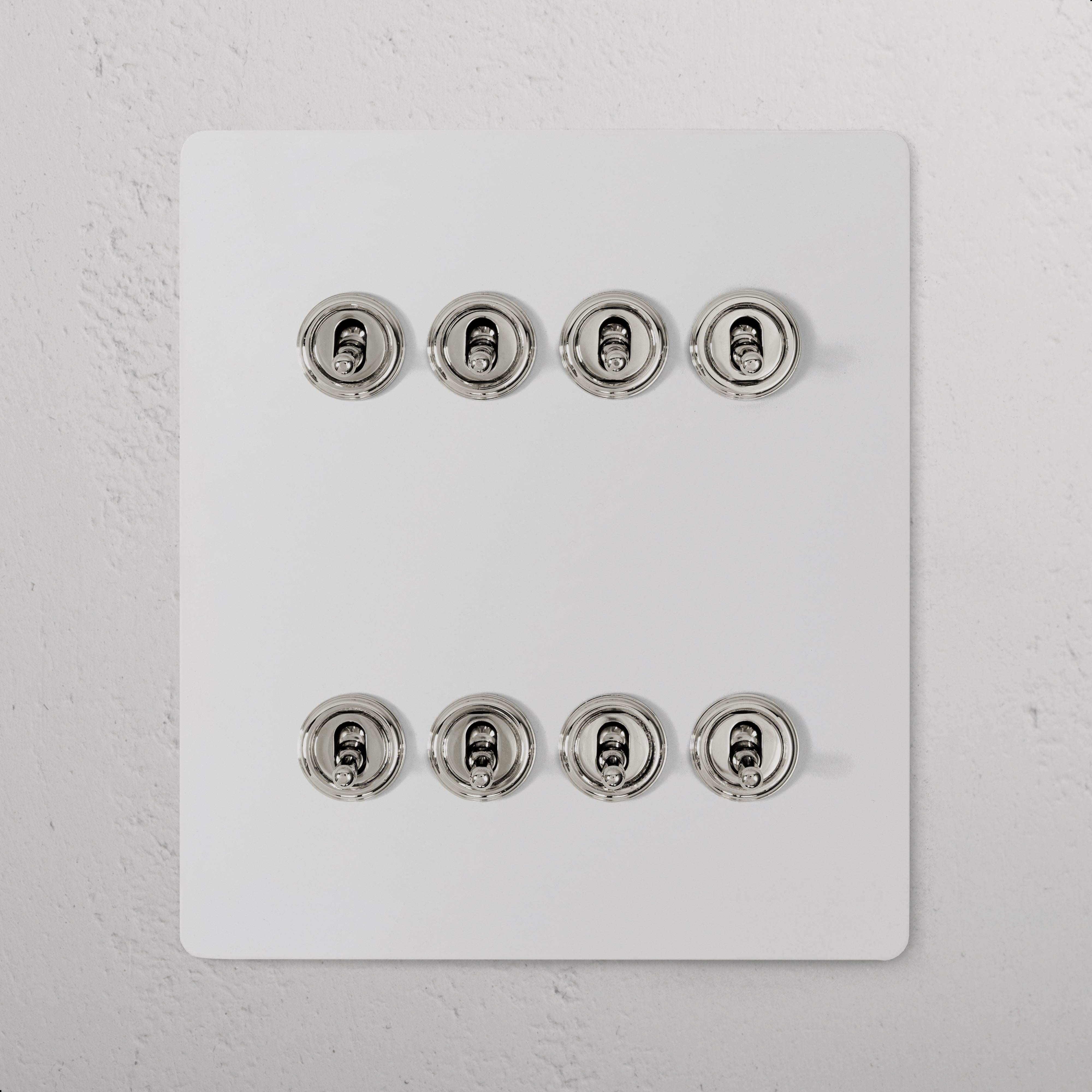 Our 8 gang two-way toggle switch is a modern take on the classic dolly design. We’ve crafted it to be as sleek and timeless as possible in any interior setting.